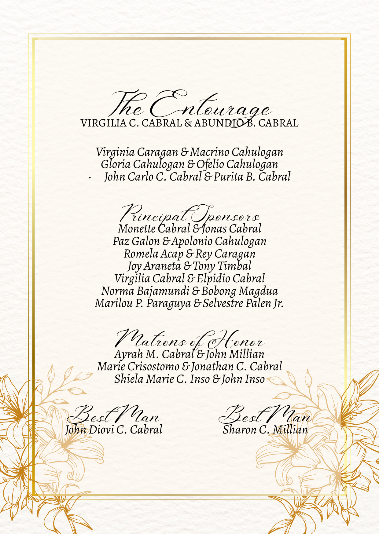 Please adhere to the specified dress code and color motif provided. Dressing accordingly is deeply appreciated, as it will contribute to the elegance and harmony of our celebration.