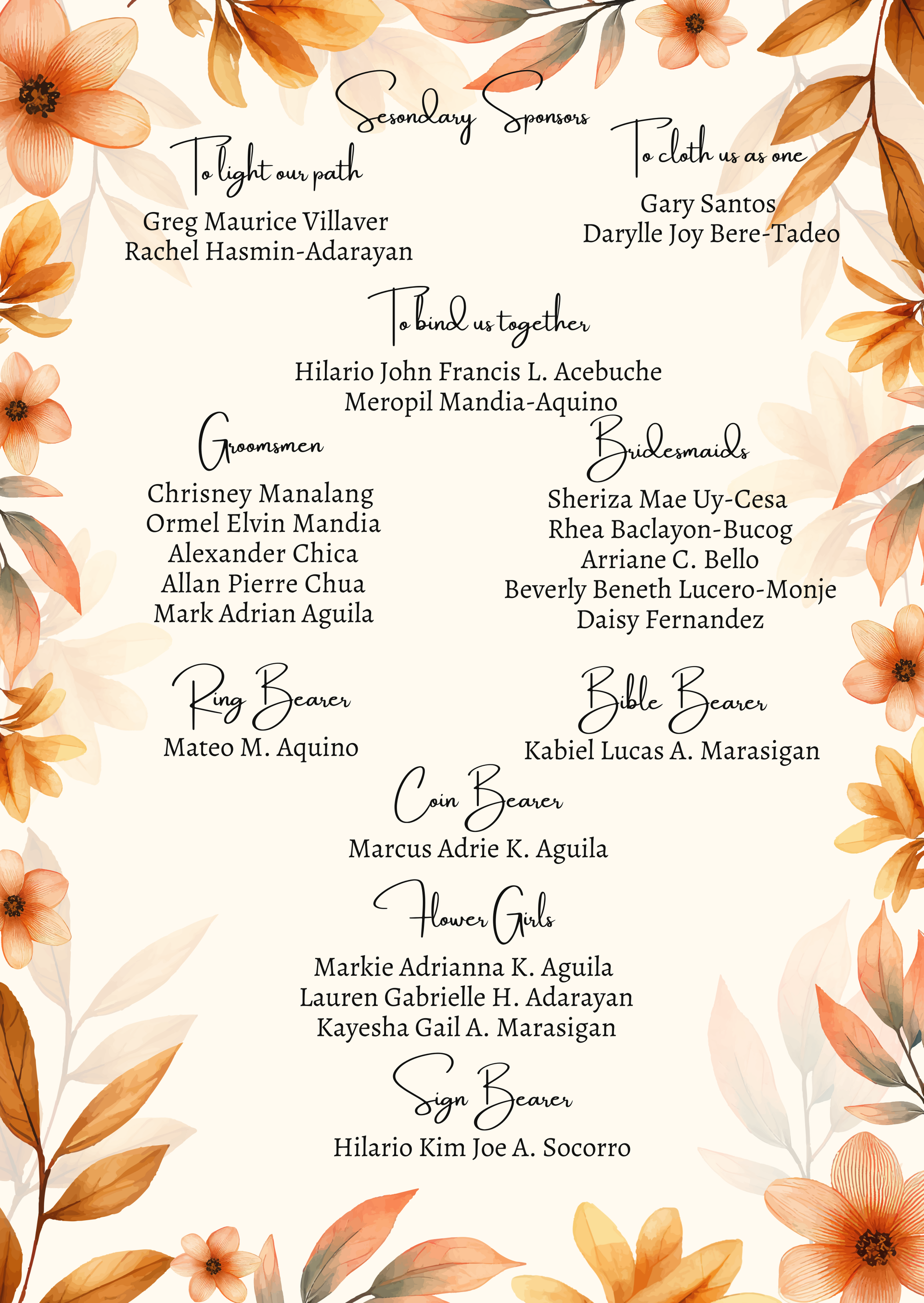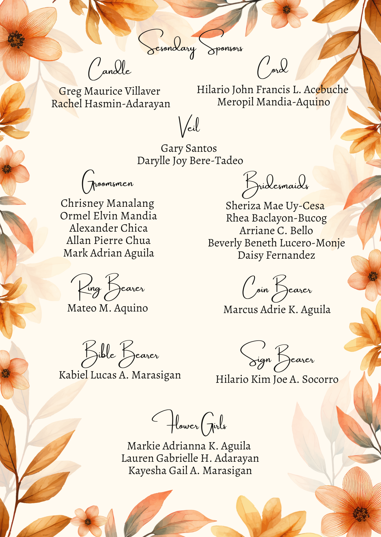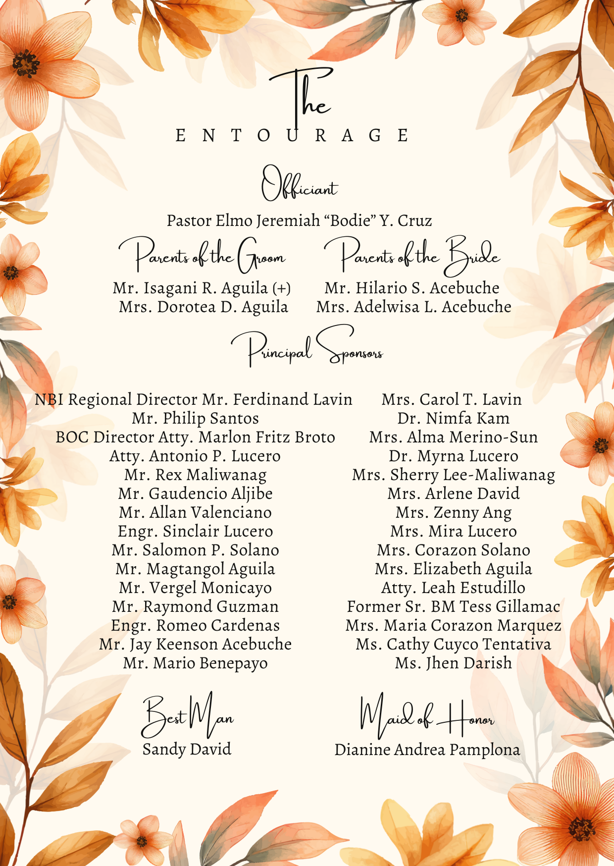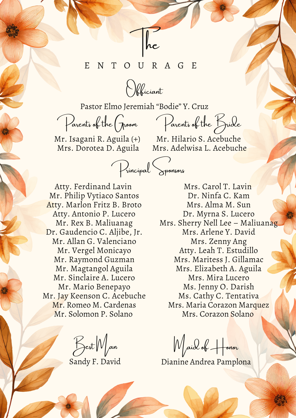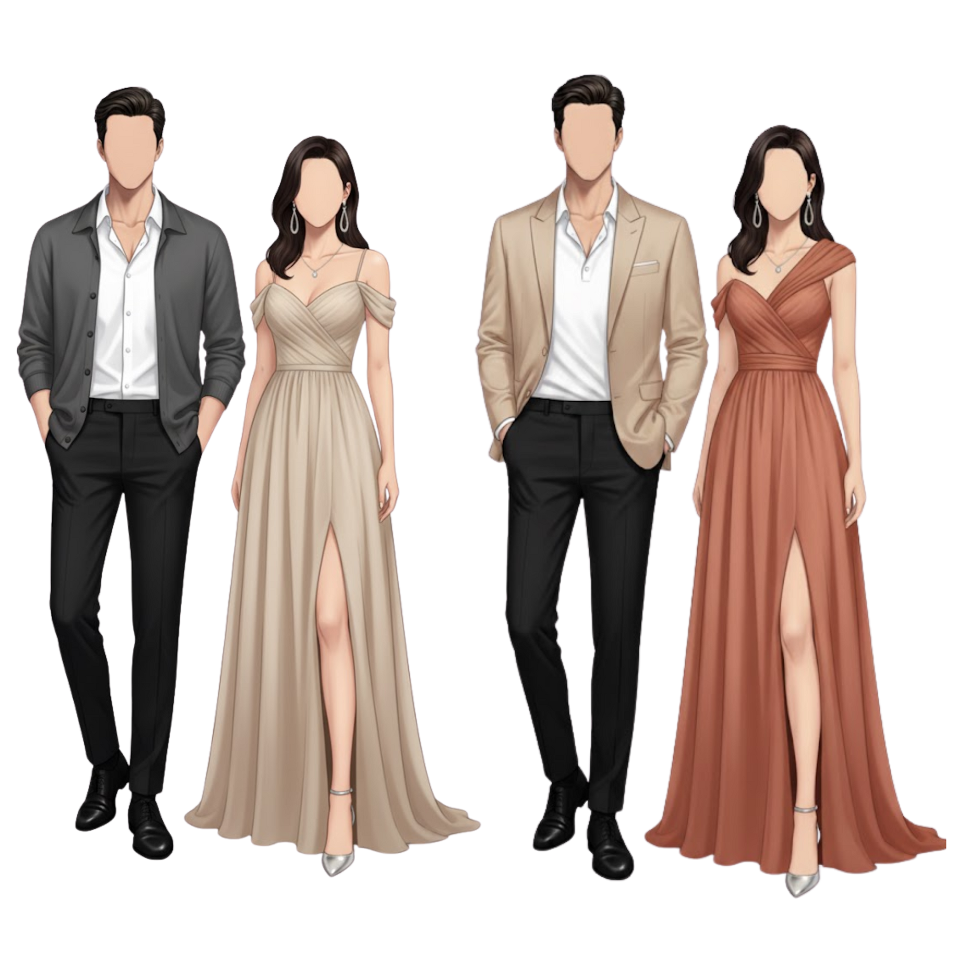 Please adhere to the specified dress code and color motif provided. Dressing accordingly is deeply appreciated, as it will contribute to the elegance and harmony of our celebration.