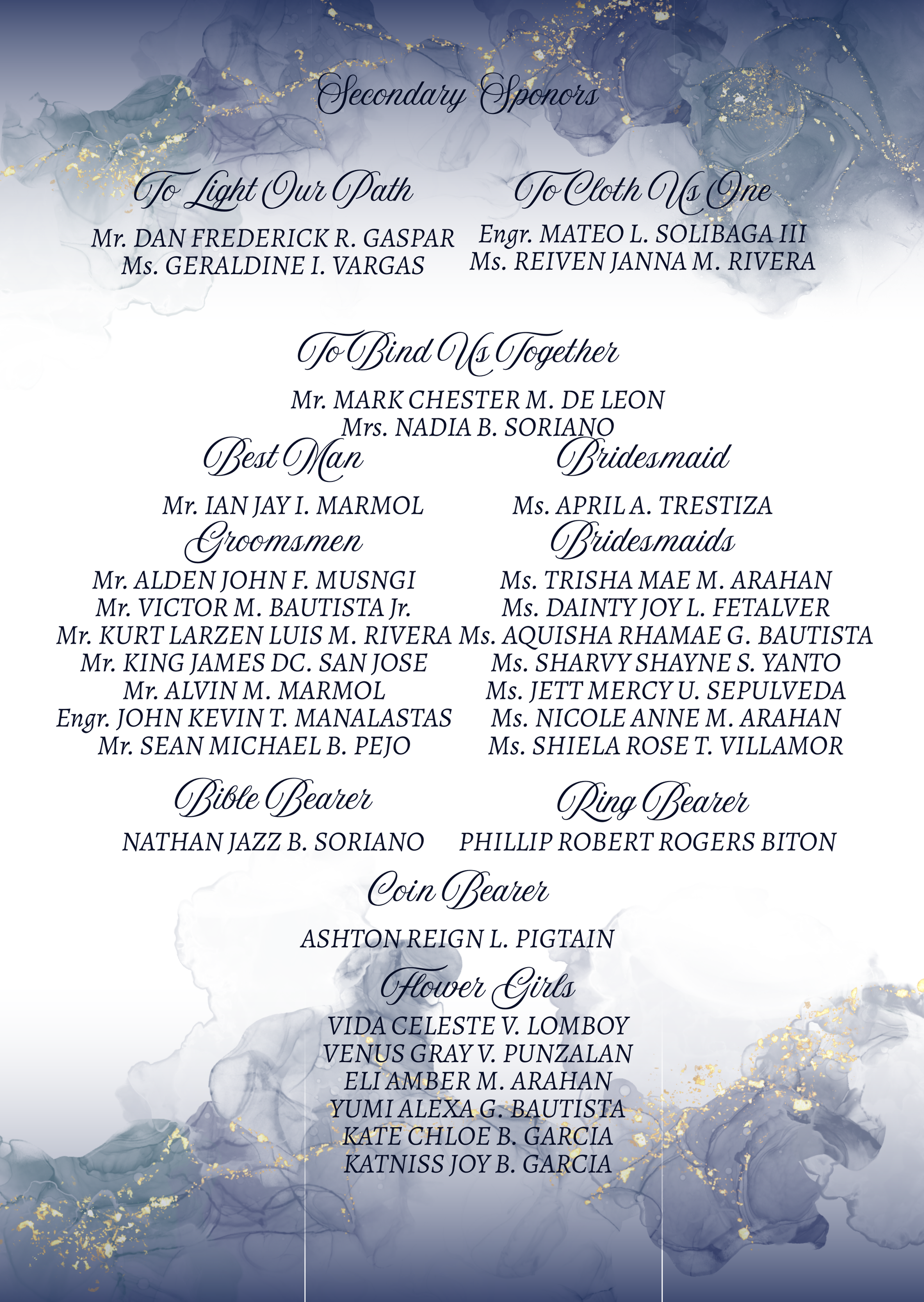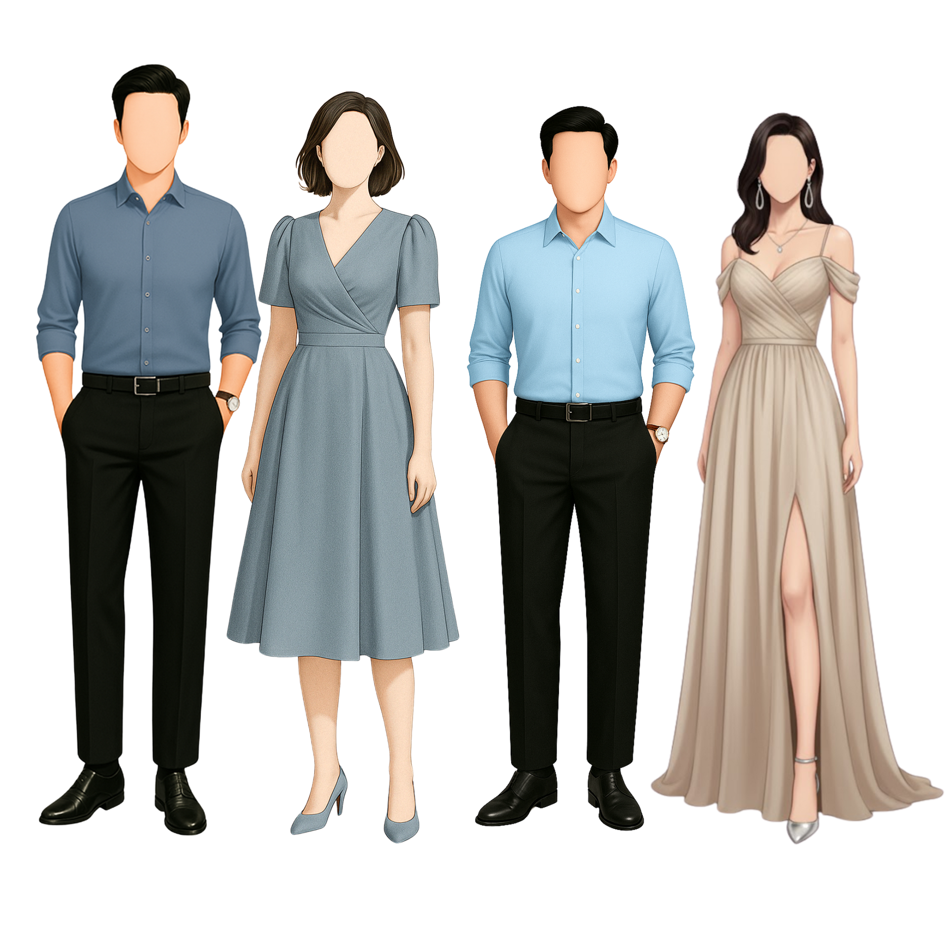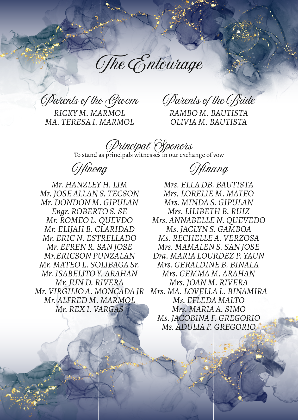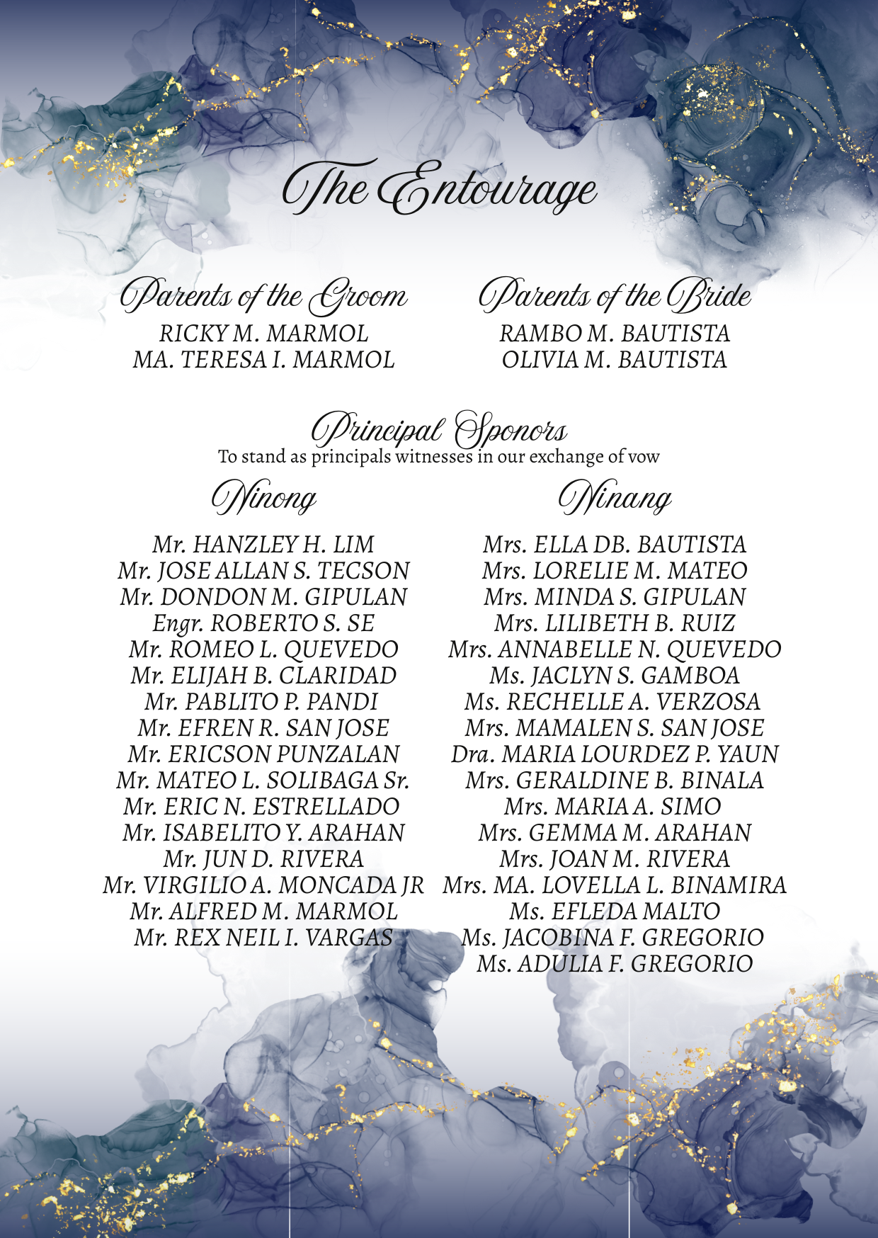 Please adhere to the specified dress code and color motif provided. Dressing accordingly is deeply appreciated, as it will contribute to the elegance and harmony of our celebration.
