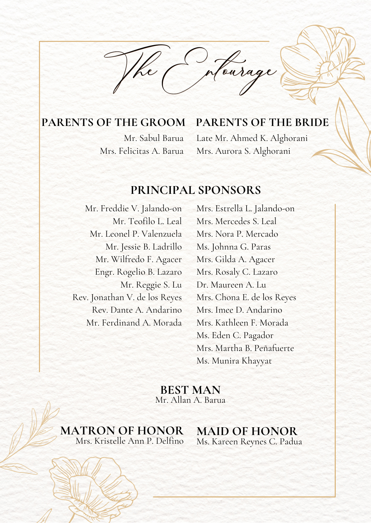 We kindly request that you avoid wearing white, as this is reserved for the bride and groom. We also ask you to please refrain from casual or revealing attire such as denim jeans, shorts, cargo pants, t-shirts, dresses above the knee, sneakers, and slippers.