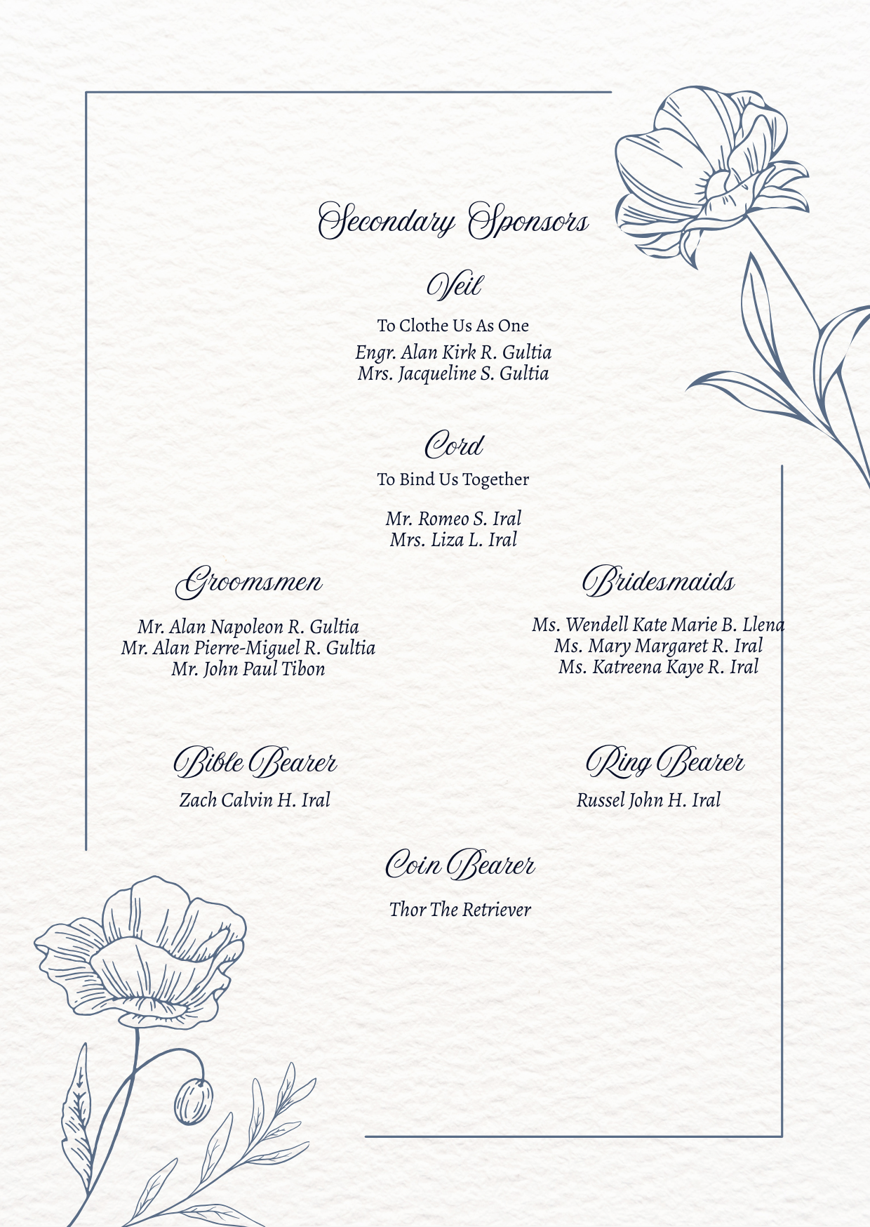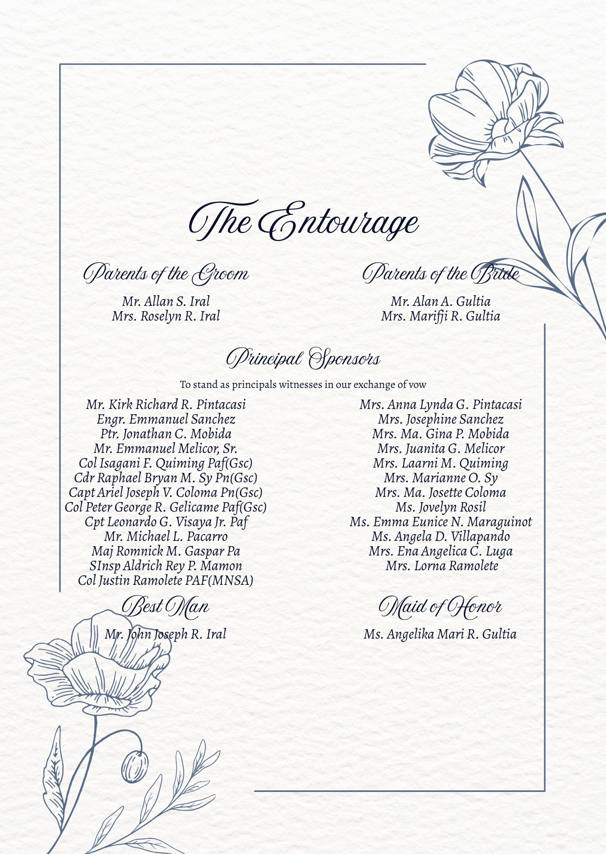 Please adhere to the specified dress code and color motif provided. Dressing accordingly is deeply appreciated, as it will contribute to the elegance and harmony of our celebration.