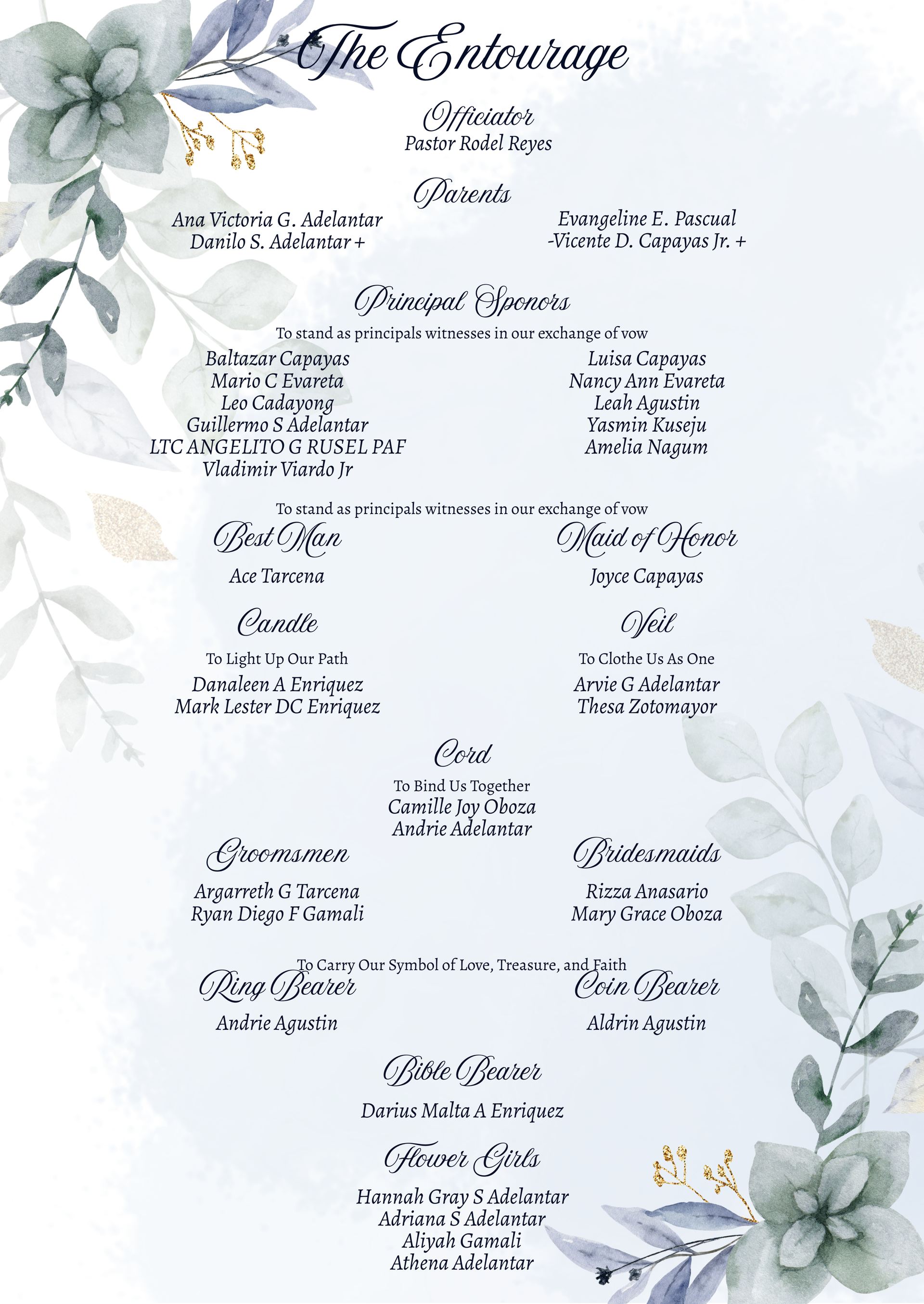 Please adhere to the specified dress code and color motif provided. Dressing accordingly is deeply appreciated, as it will contribute to the elegance and harmony of our celebration.