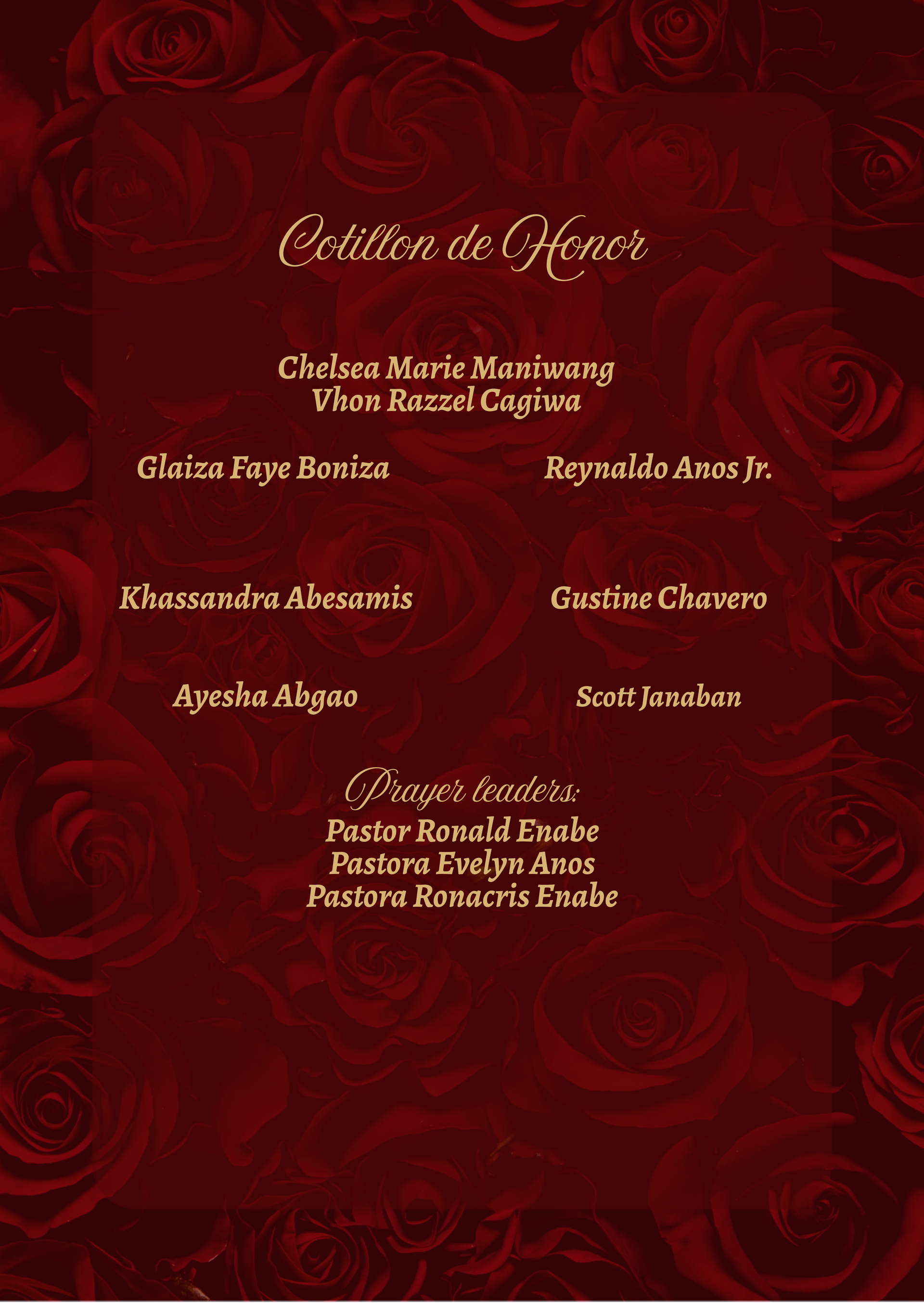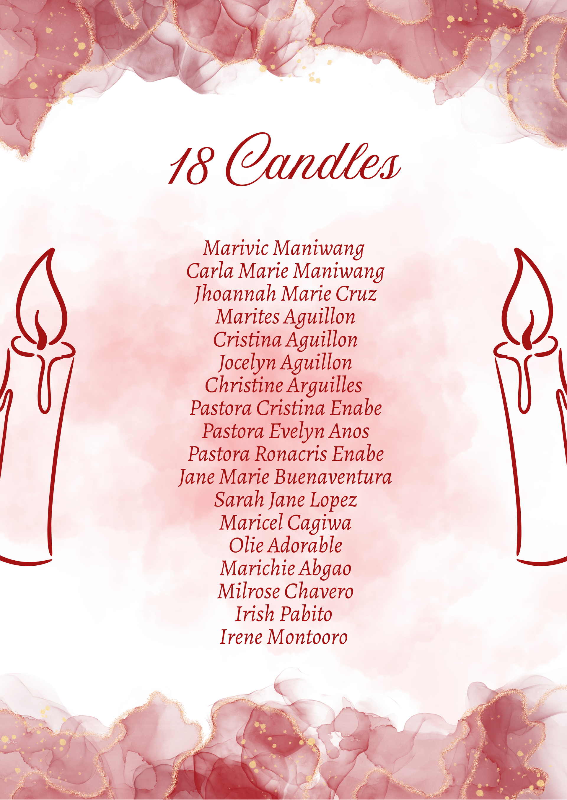 Thank you so much for being with me on this very special day—my 18th birthday. Your love, prayers, and support have guided me as I grew, and I feel truly blessed to celebrate this milestone surrounded by people who have been part of my journey.