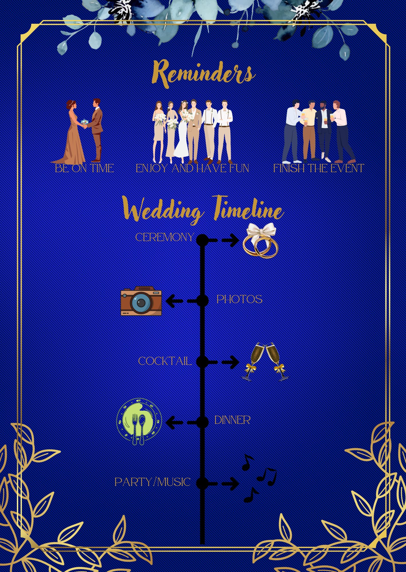 Please adhere to the specified dress code and color motif provided. Dressing accordingly is deeply appreciated, as it will contribute to the elegance and harmony of our celebration.