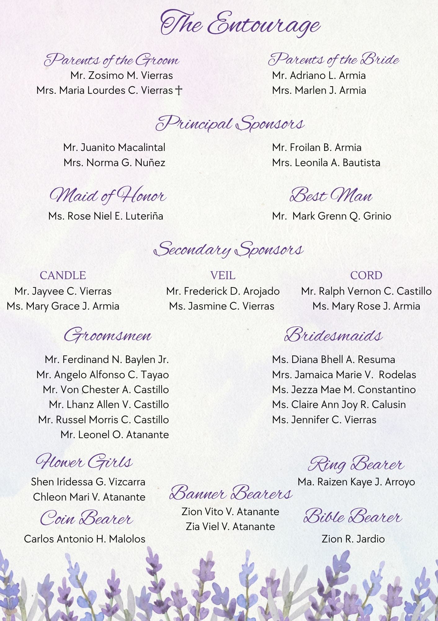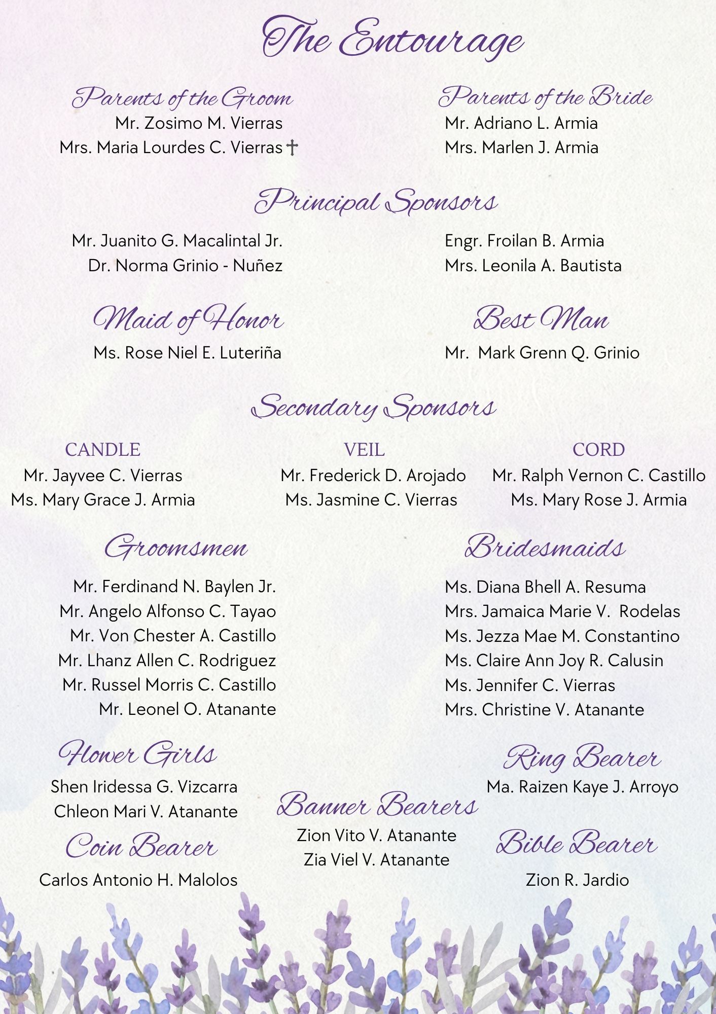 Please follow the dress code and color motif provided, as dressing accordingly will add to the elegance and harmony of our celebration.