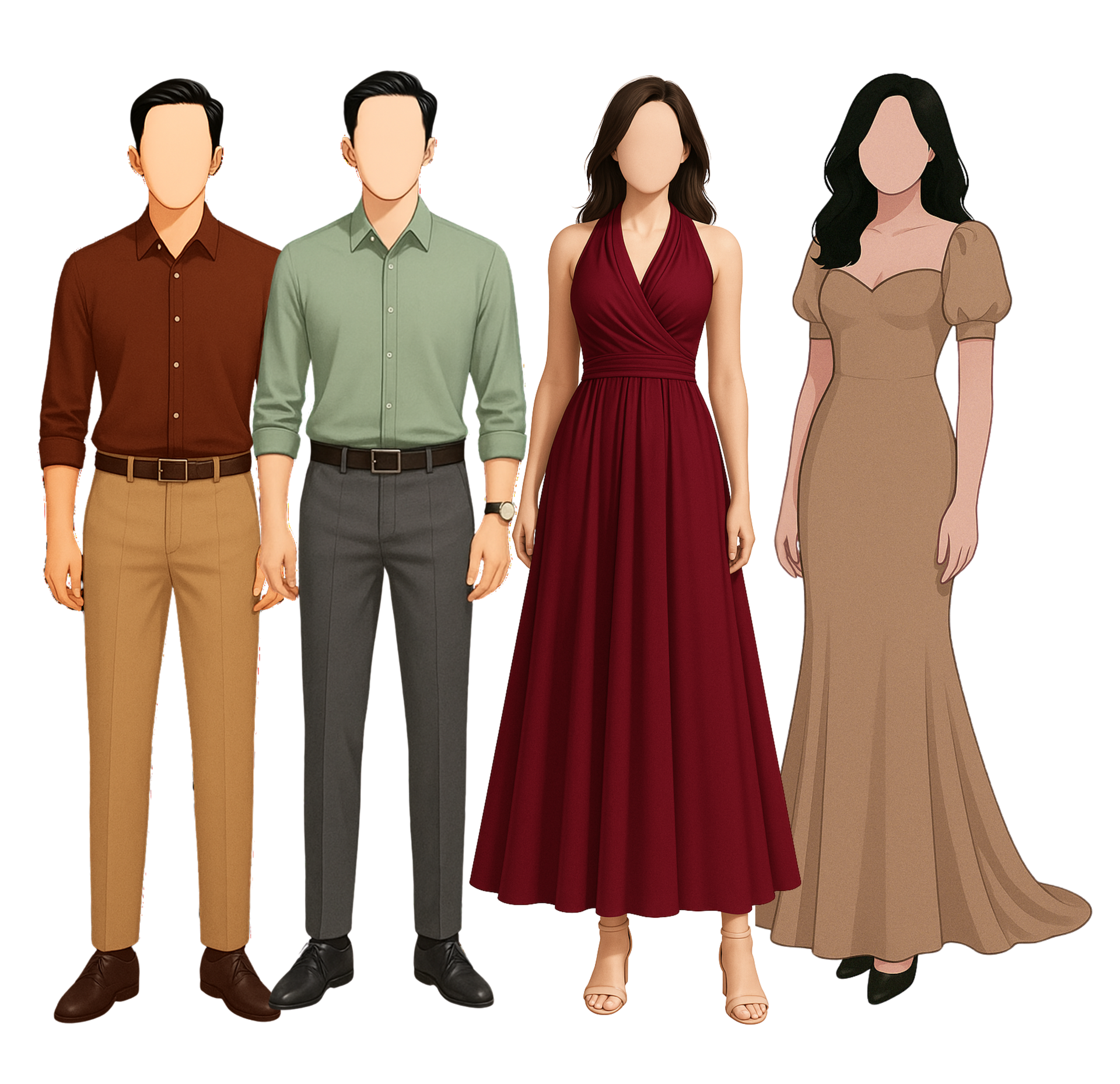 We kindly request that all guests honor the dress code by avoiding overly casual attire such as polo shirts, slippers, denim, and jeans. Please avoid mini dresses and printed shirt. Just a heads-up: since we’ll be walking on sand, we recommend wearing beach-friendly shoes like wedge or block heal sandals instead of thin heels. It’ll be much comfortable