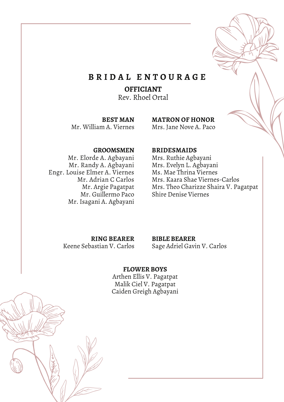 Please adhere to the specified dress code and color motif provided. Dressing accordingly is deeply appreciated, as it will contribute to the elegance and harmony of our celebration.