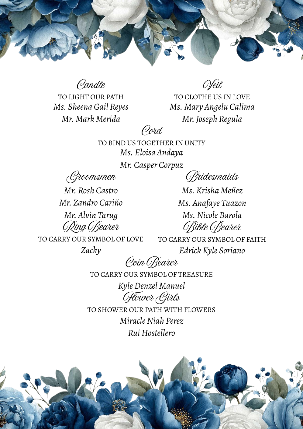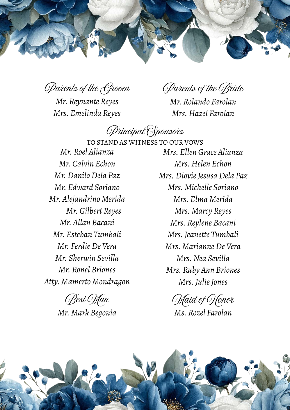 Please adhere to the specified dress code and color motif provided. Dressing accordingly is deeply appreciated, as it will contribute to the elegance and harmony of our celebration.