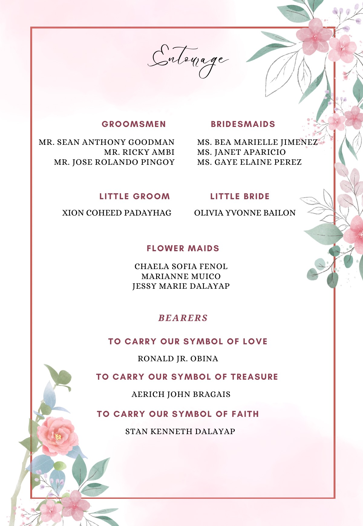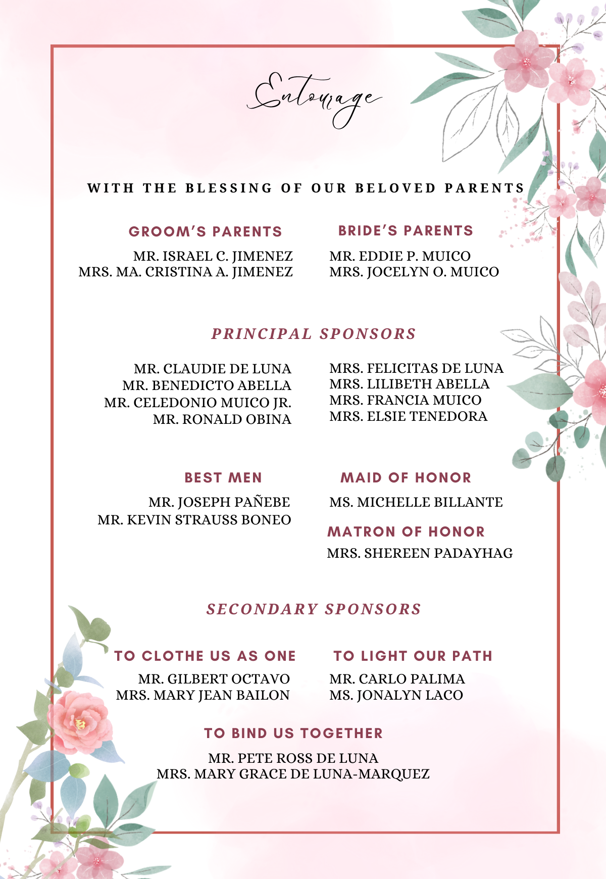 Please adhere to the specified dress code and color motif provided. Dressing accordingly is deeply appreciated, as it will contribute to the elegance and harmony of our celebration.