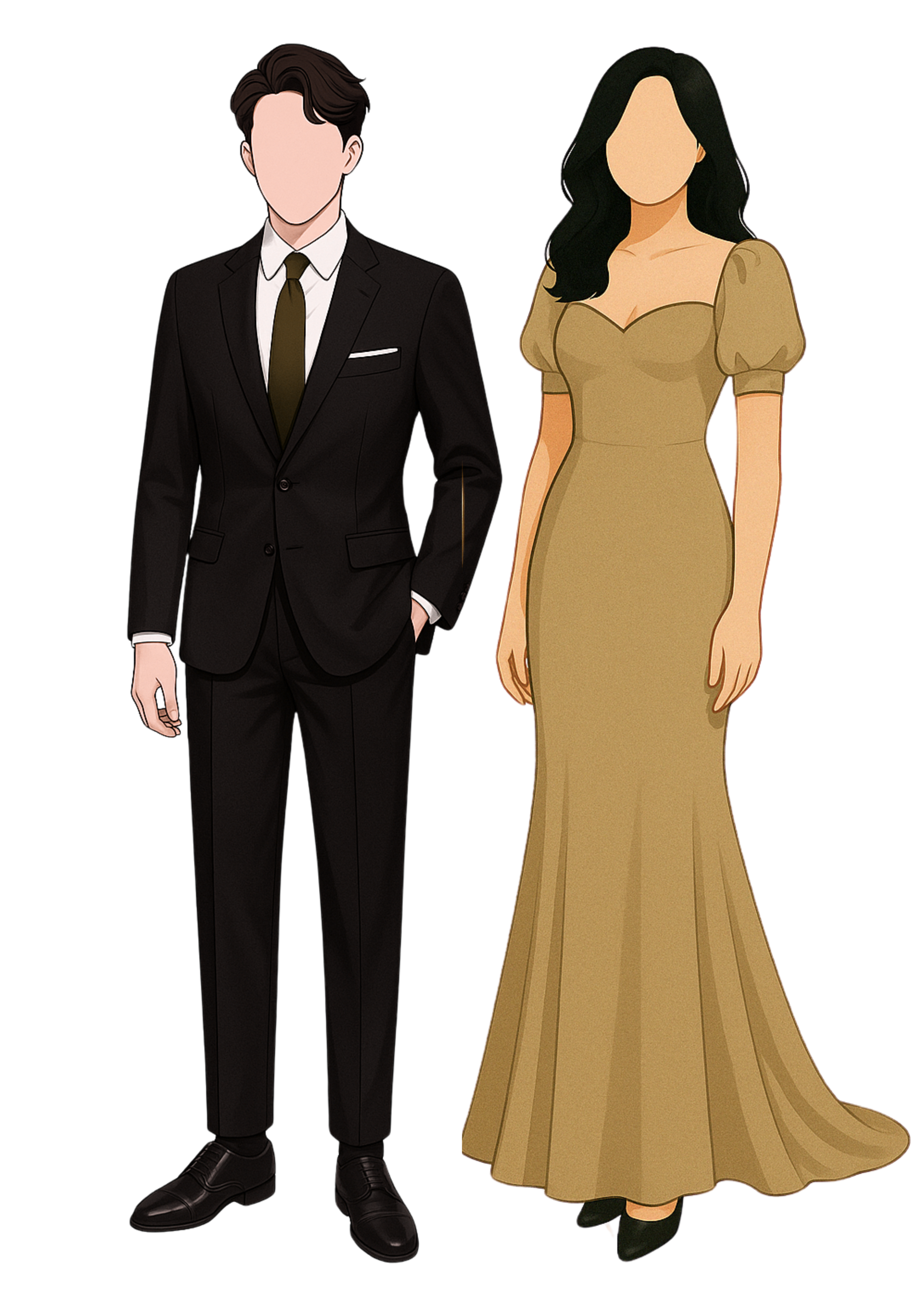 Please adhere to the specified dress code and color motif provided. Dressing accordingly is deeply appreciated, as it will contribute to the elegance and harmony of our celebration.