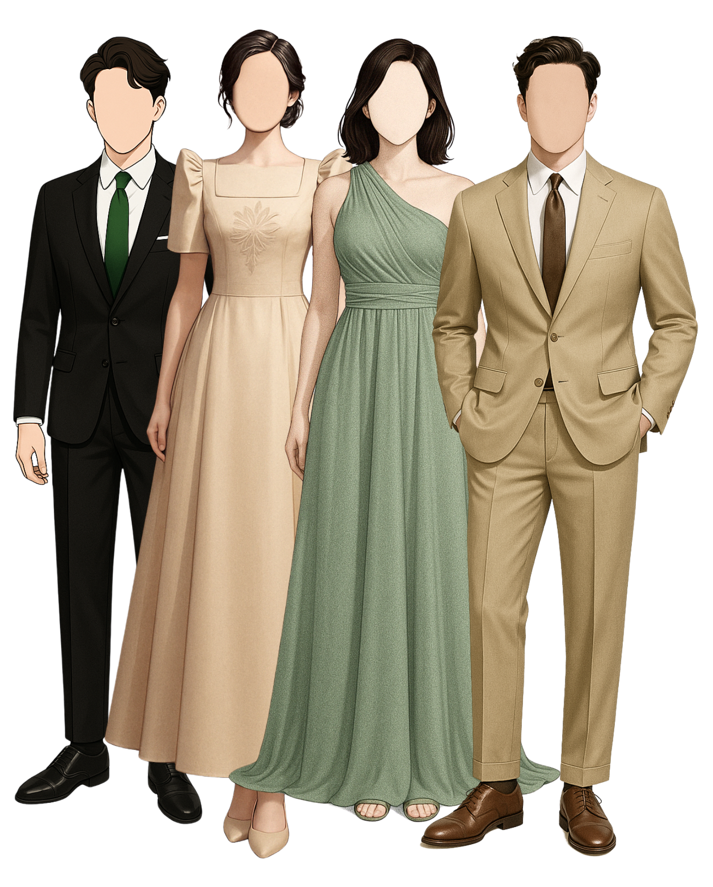 Please adhere to the specified dress code and color motif provided. Dressing accordingly is deeply appreciated, as it will contribute to the elegance and harmony of our celebration.