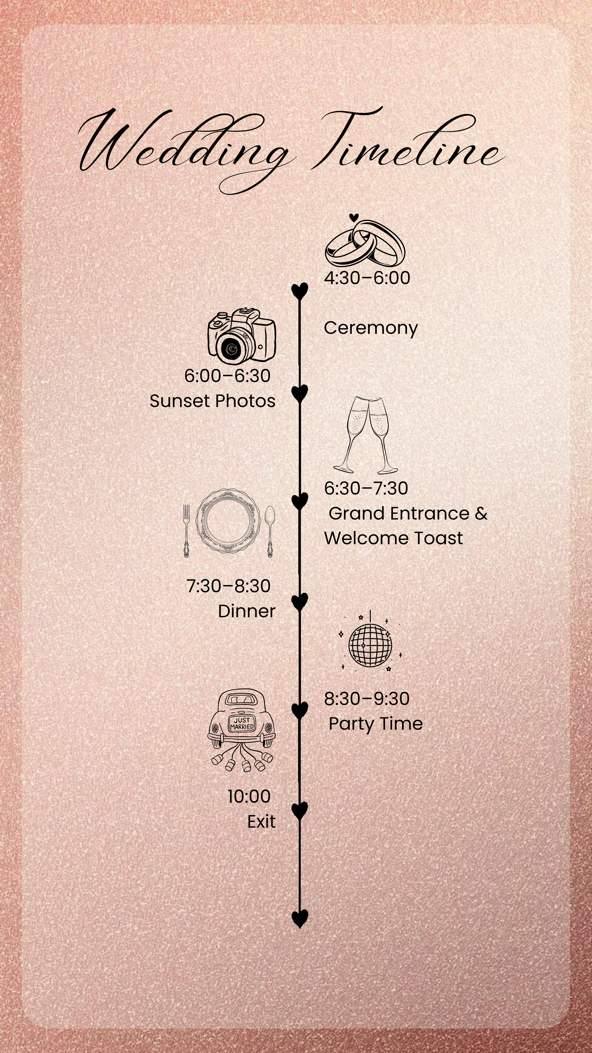 We are so excited to share this special day with you! Here, you’ll find all the details about our wedding day, including venue locations, event schedules, and more.