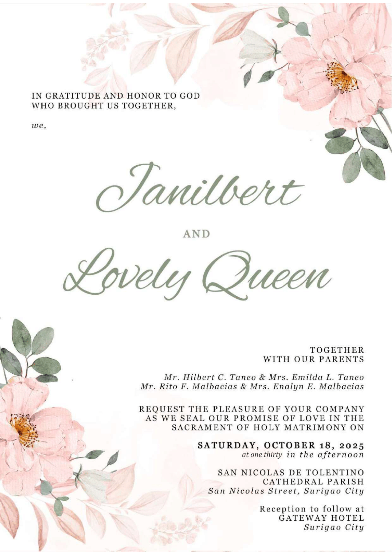 As love is what this day is all about, your presence is what we cannot celebrate without. But should you believe that a gift is still worth giving, a small envelope for our future is a delightful blessing.