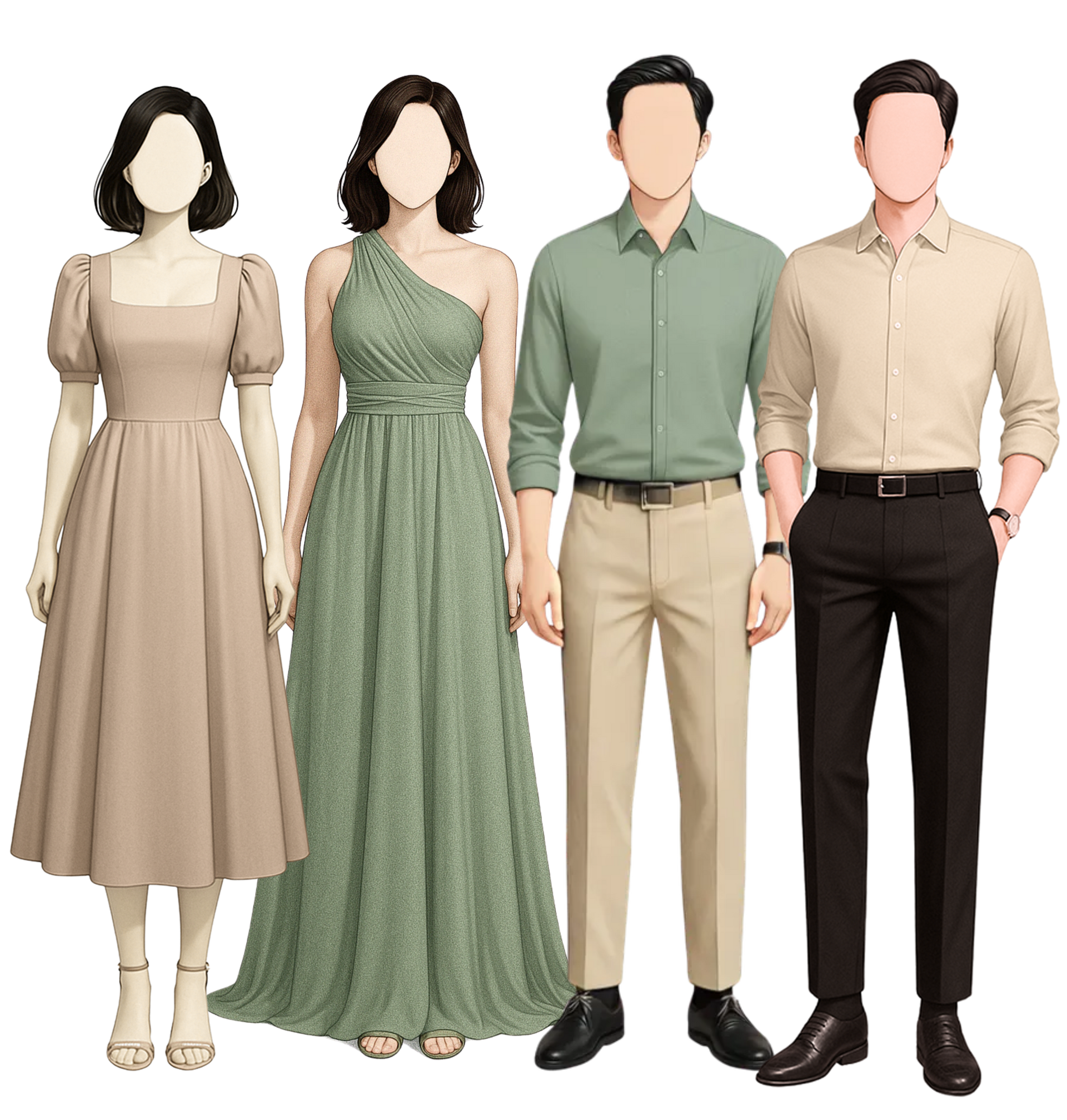 Please adhere to the specified dress code and color motif provided. Dressing accordingly is deeply appreciated, as it will contribute to the elegance and harmony of our celebration.
