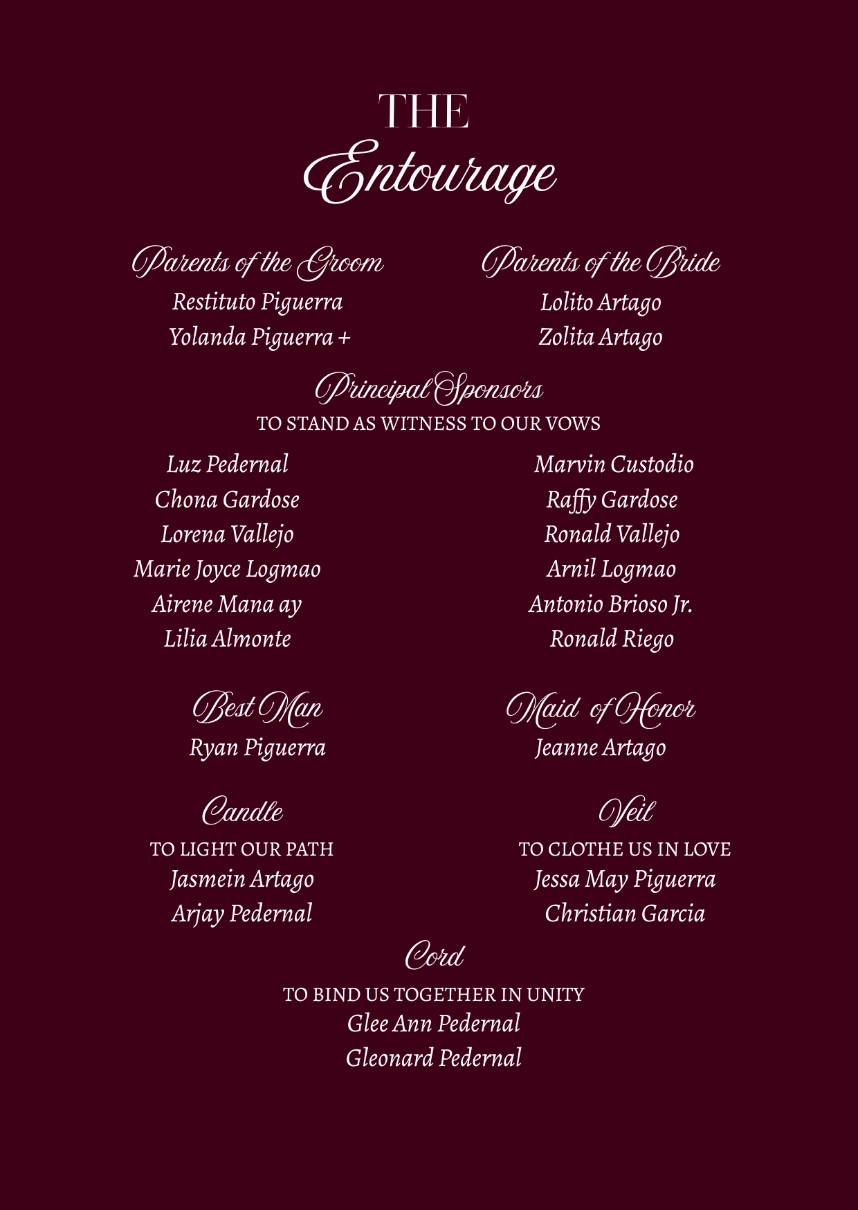 Please adhere to the specified dress code and color motif provided. Dressing accordingly is deeply appreciated, as it will contribute to the elegance and harmony of our celebration.