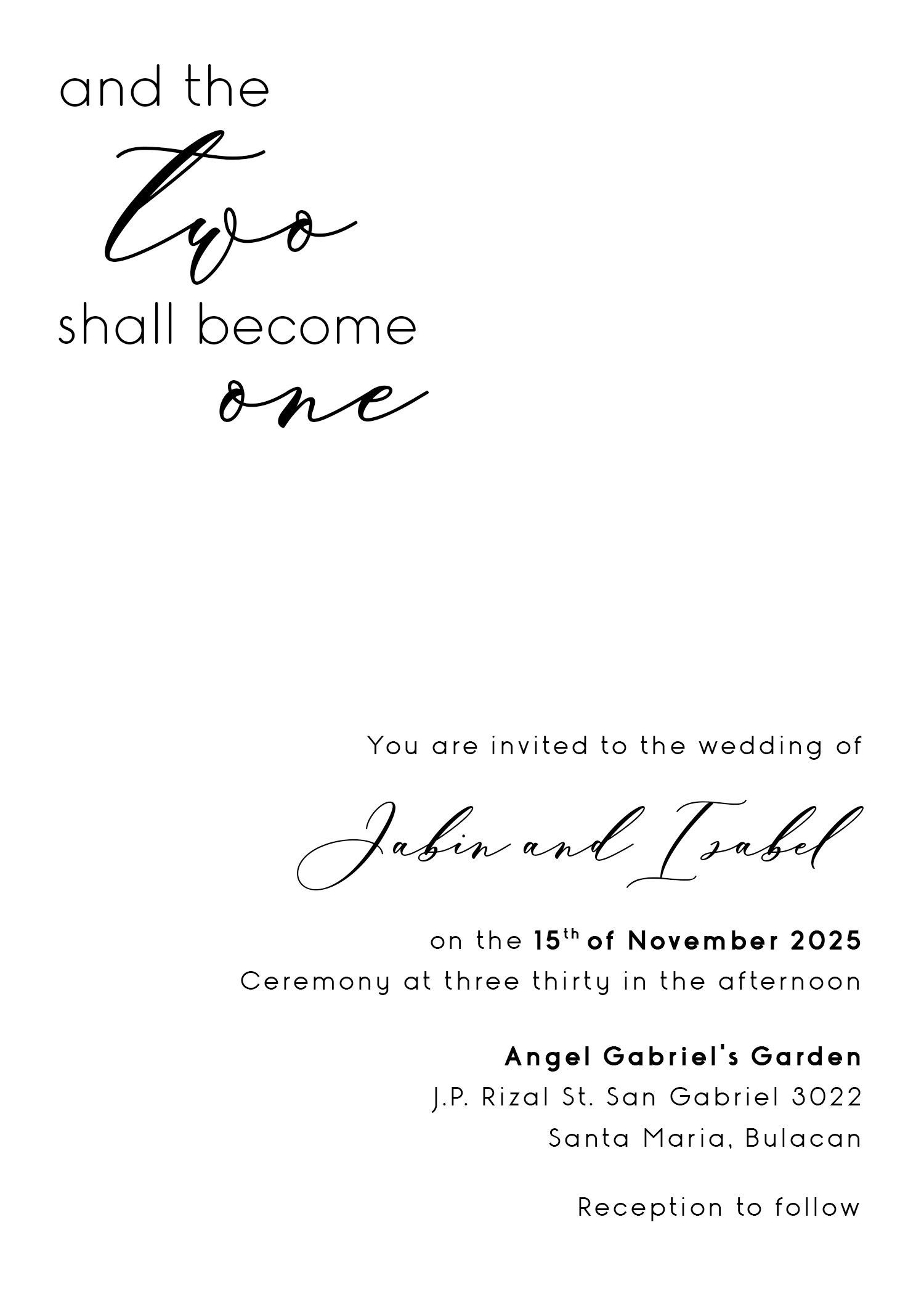 YOU ARE CORDIALLY INVITED TO THE WEDDING OF