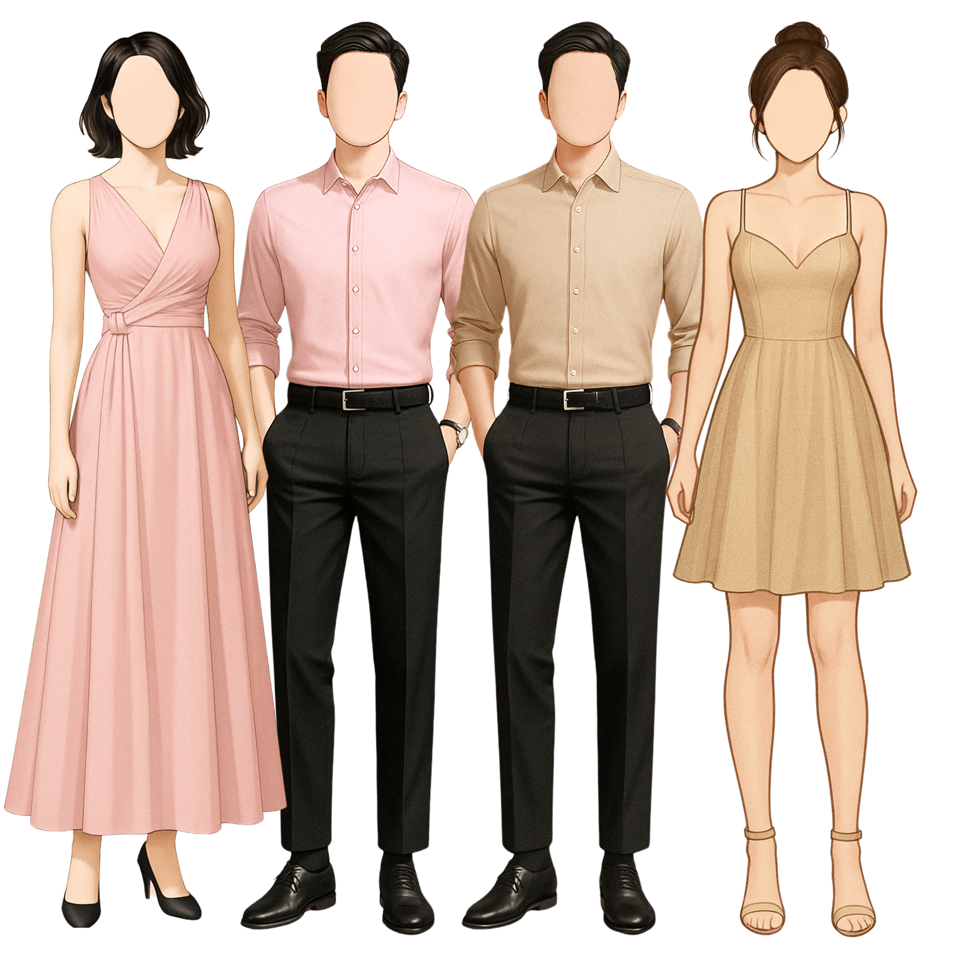 Please adhere to the specified dress code and color motif provided. Dressing accordingly is deeply appreciated, as it will contribute to the elegance and harmony of our celebration.