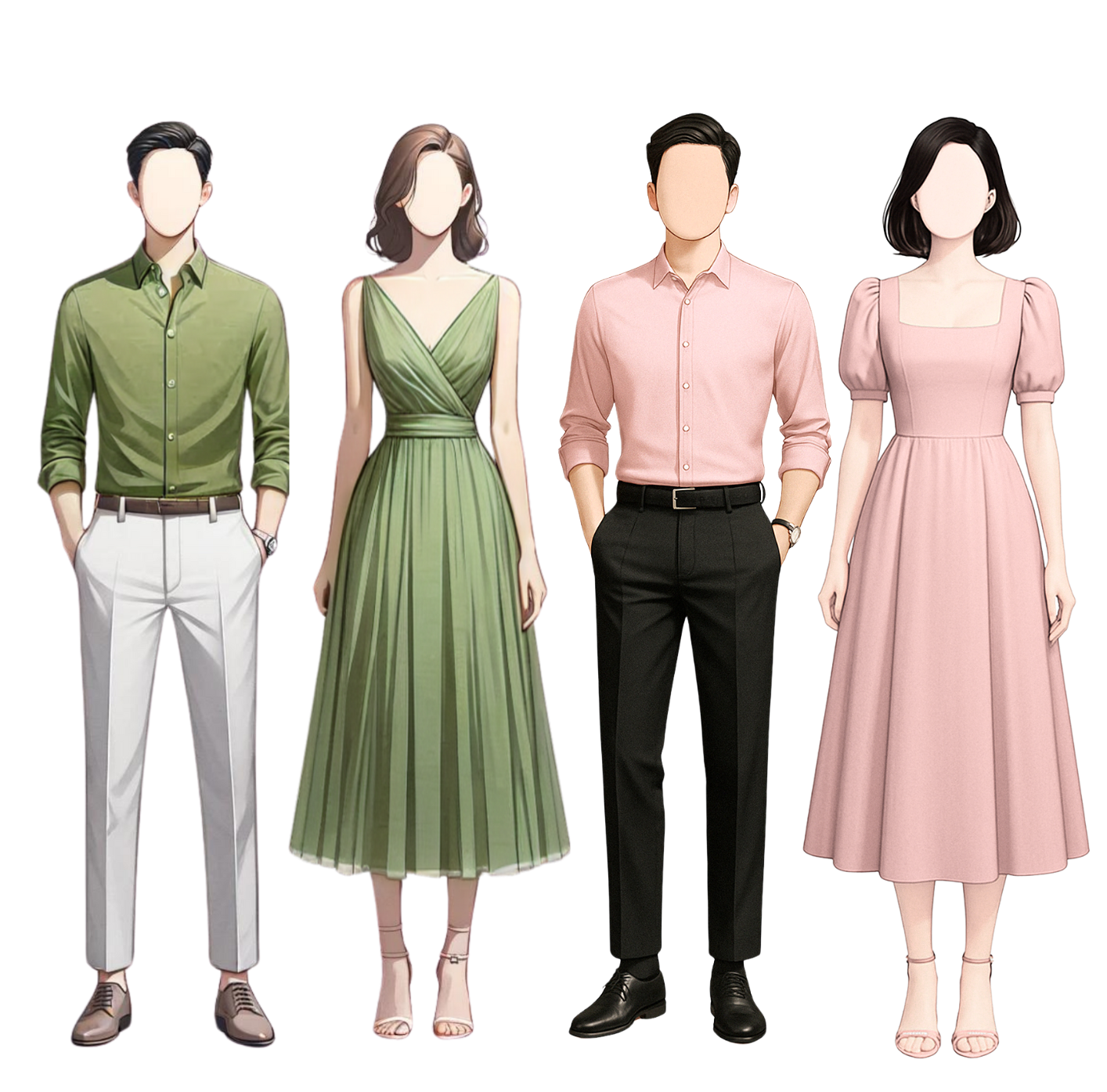Please adhere to the specified dress code and color motif provided. Dressing accordingly is deeply appreciated, as it will contribute to the elegance and harmony of our celebration.