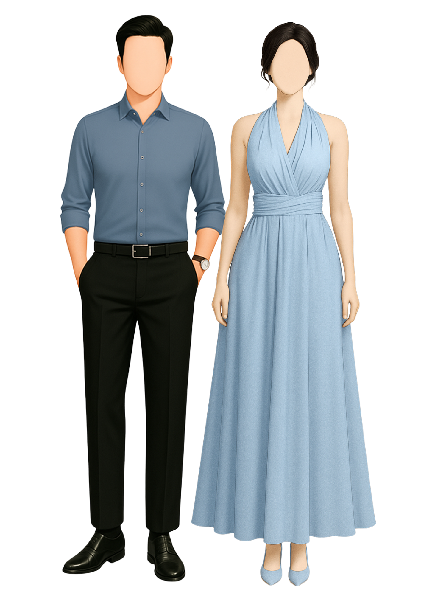 Please adhere to the specified dress code and color motif provided. Dressing accordingly is deeply appreciated, as it will contribute to the elegance and harmony of our celebration.