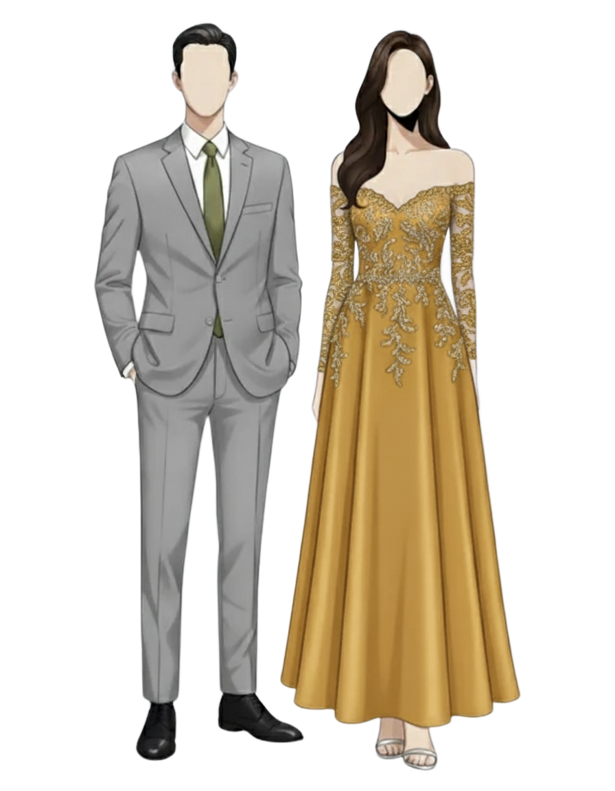 Ladies: Long or cocktail dress, or semiformal attire with a touch of gold