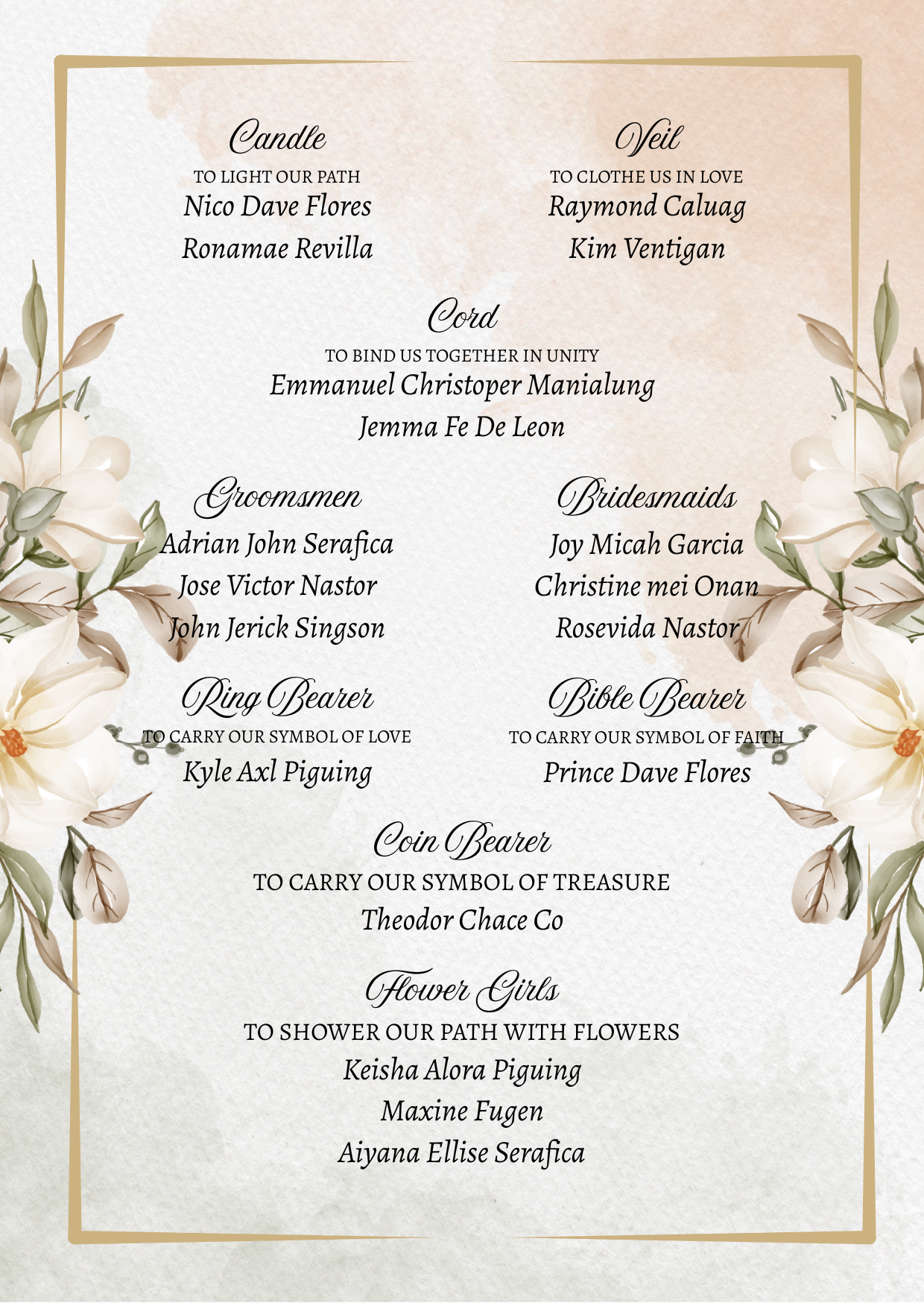 Please adhere to the specified dress code and color motif provided. Dressing accordingly is deeply appreciated, as it will contribute to the elegance and harmony of our celebration.