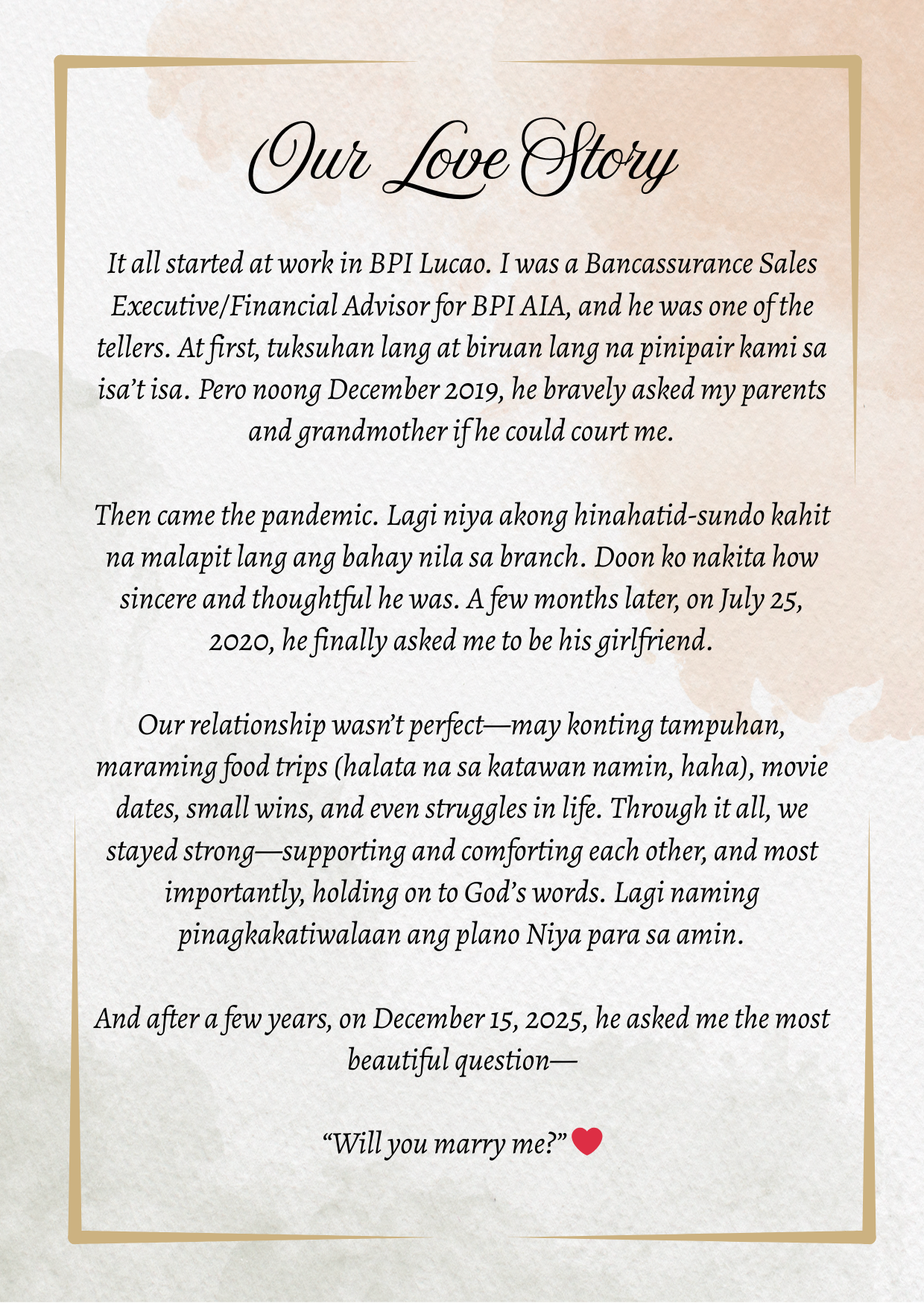 With all the blessings that God poured out on us, we cannot ask for more. Your presence and prayers are all we request. However, if you still believe that a gift is worth giving, a monetary gift for our future would be greatly appreciated.