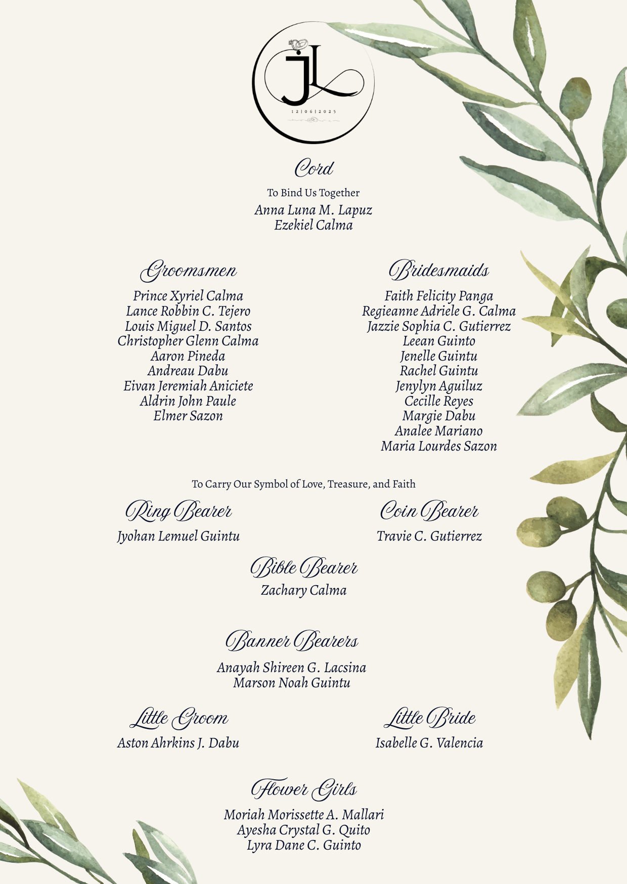 Please adhere to the specified dress code and color motif provided. Dressing accordingly is deeply appreciated, as it will contribute to the elegance and harmony of our celebration.