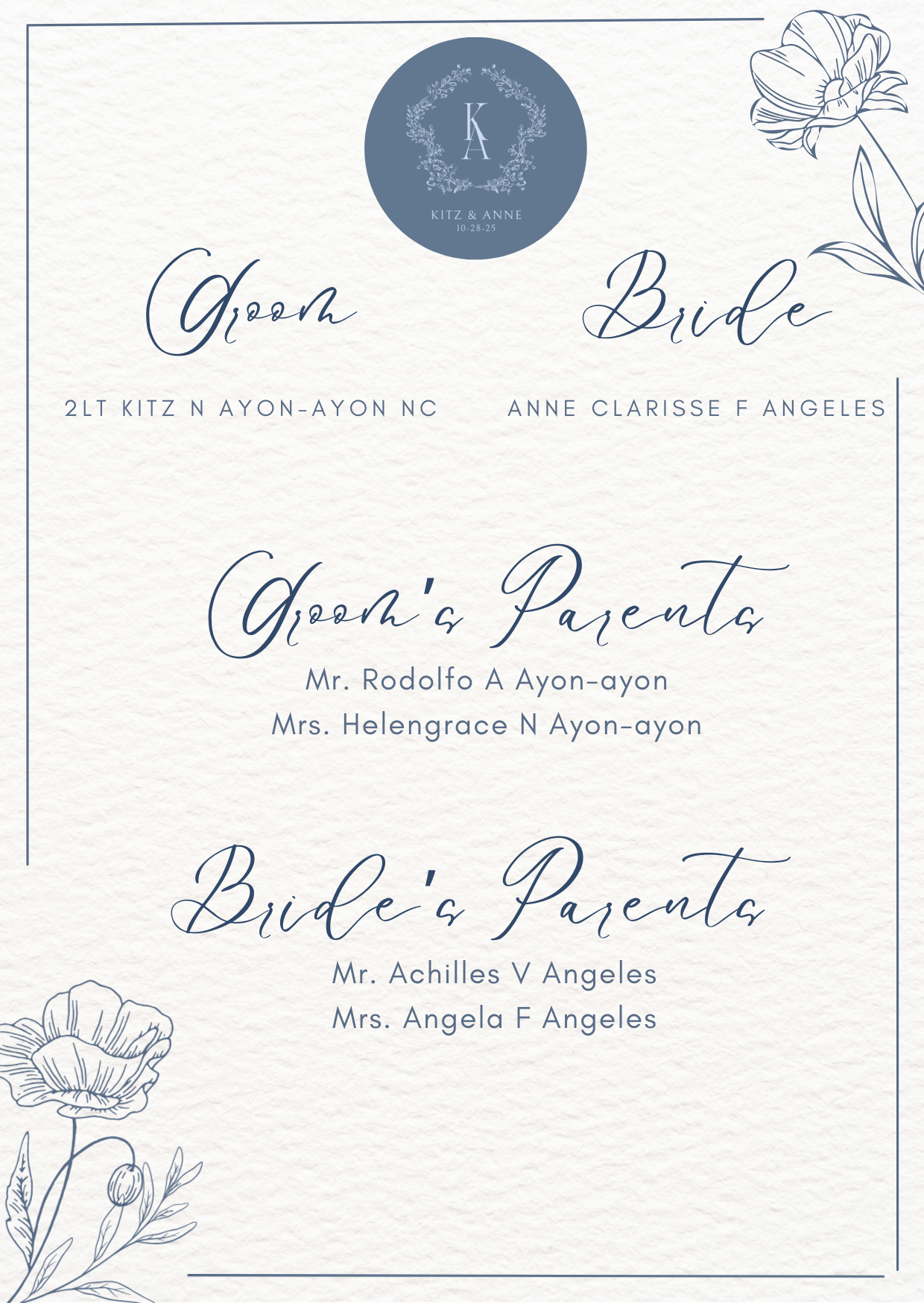 Please adhere to the specified dress code and color motif provided. Dressing accordingly is deeply appreciated, as it will contribute to the elegance and harmony of our celebration.