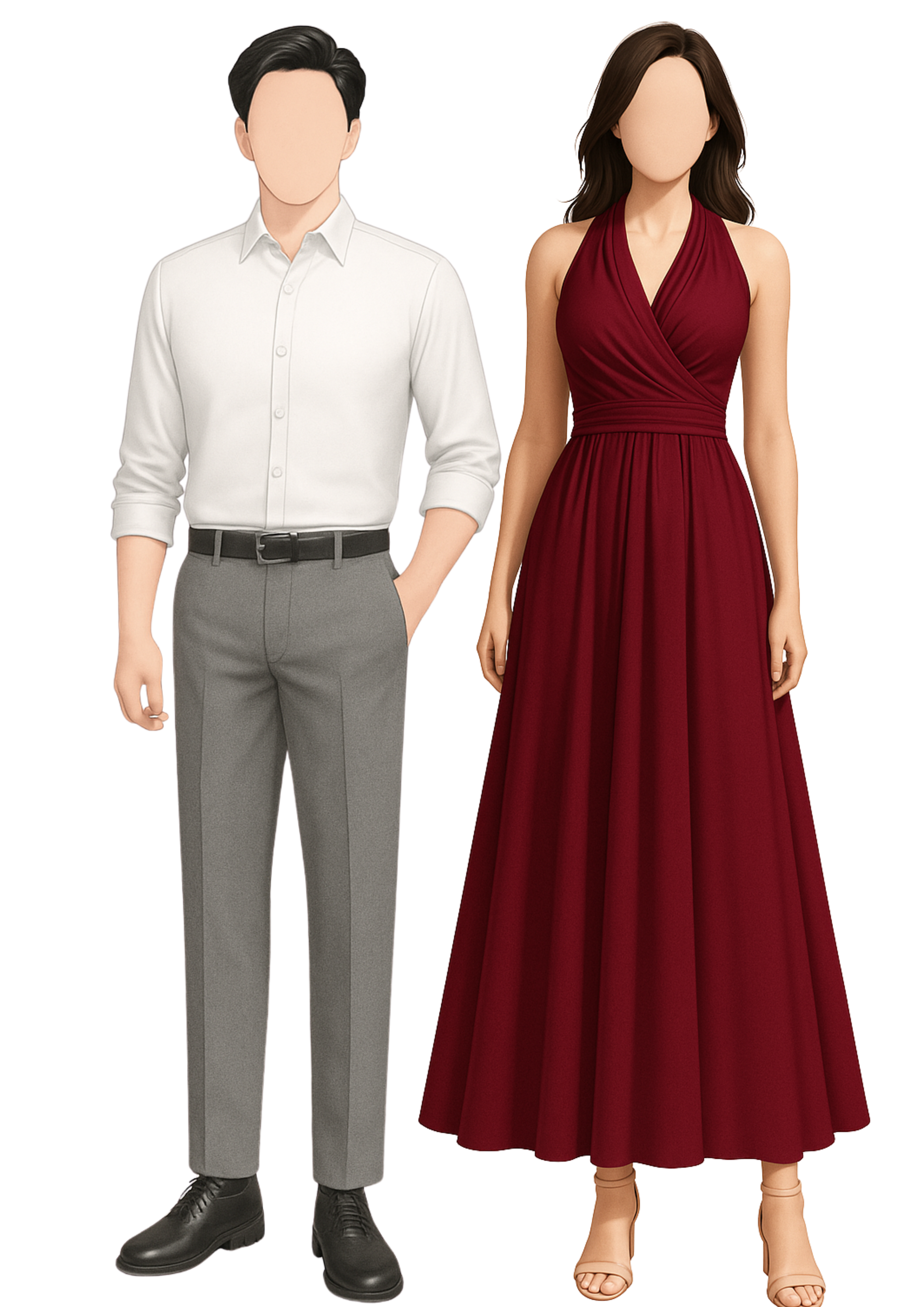 We kindly request that all guests honor the dress code by avoiding overly casual attire such as polo shirts, slippers, denim, and jeans. Please avoid mini dresses.