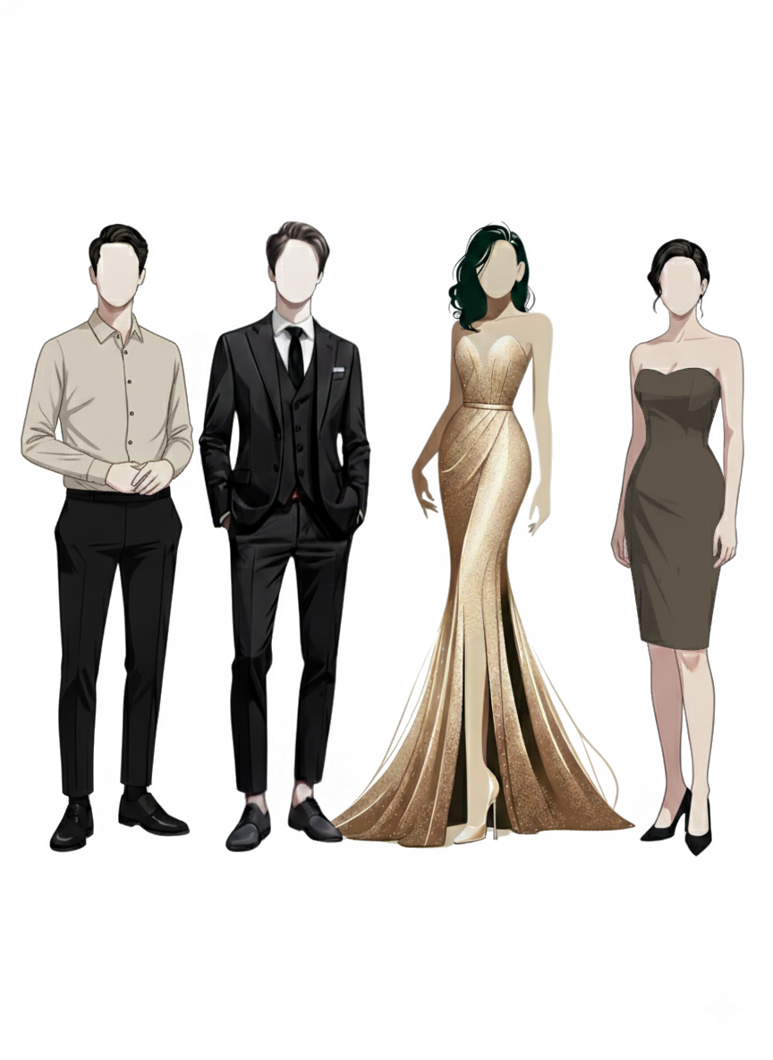 We kindly request that all guests honor the dress code by avoiding overly casual attire such as polo shirts, slippers, denim, and jeans. Please avoid mini dresses.