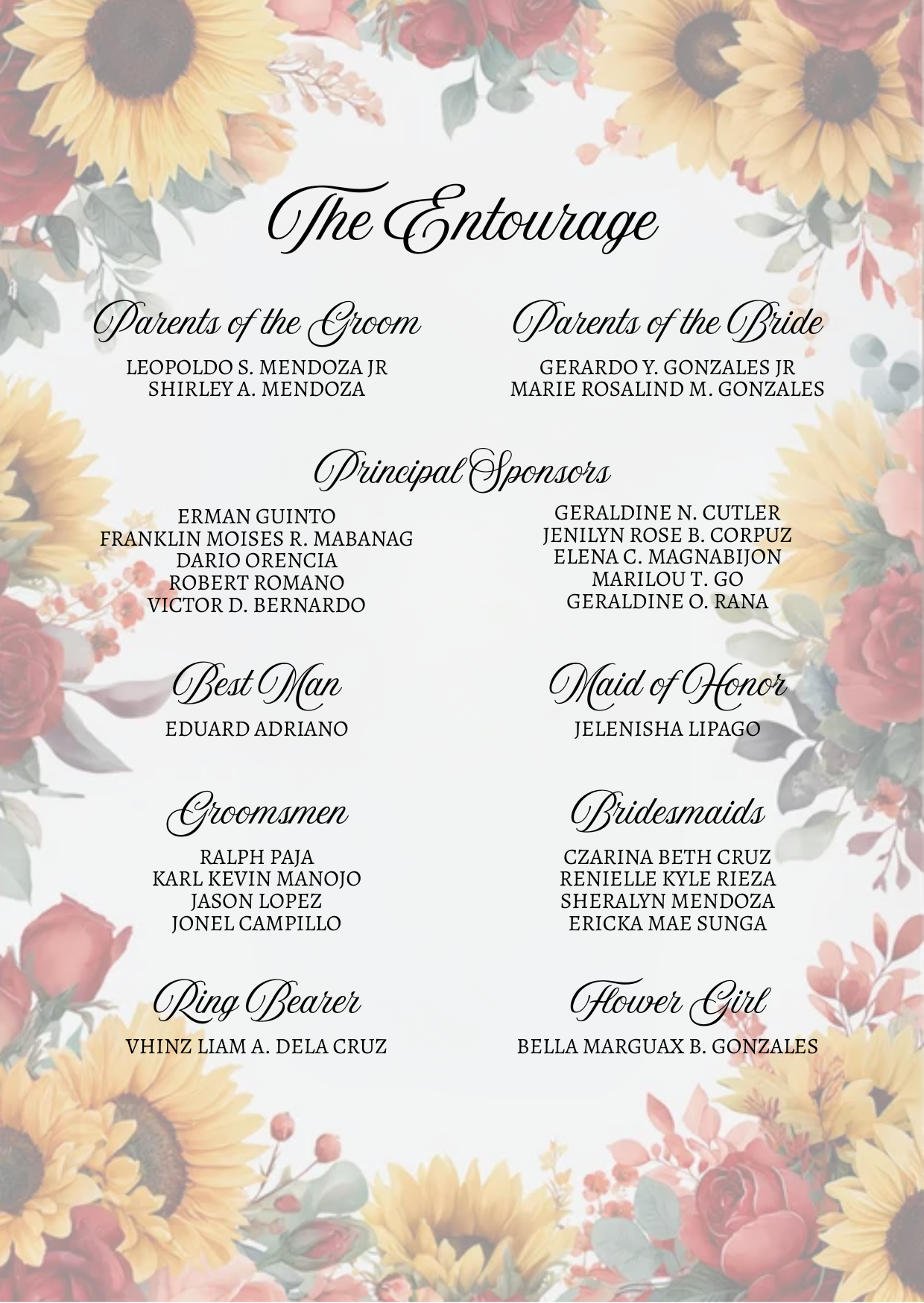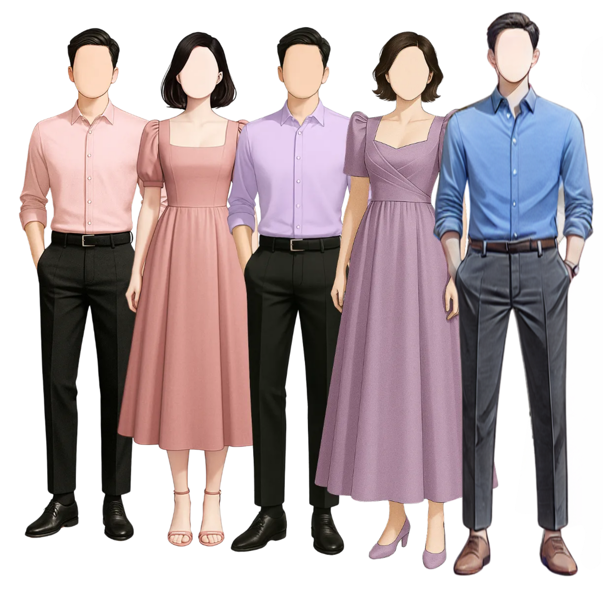 Please adhere to the specified dress code and color motif provided. Dressing accordingly is deeply appreciated, as it will contribute to the elegance and harmony of our celebration.