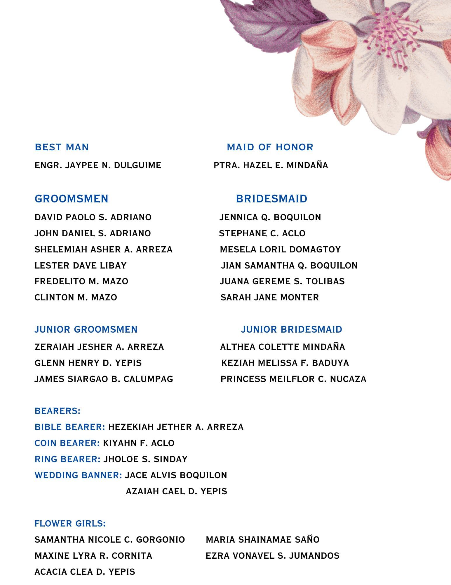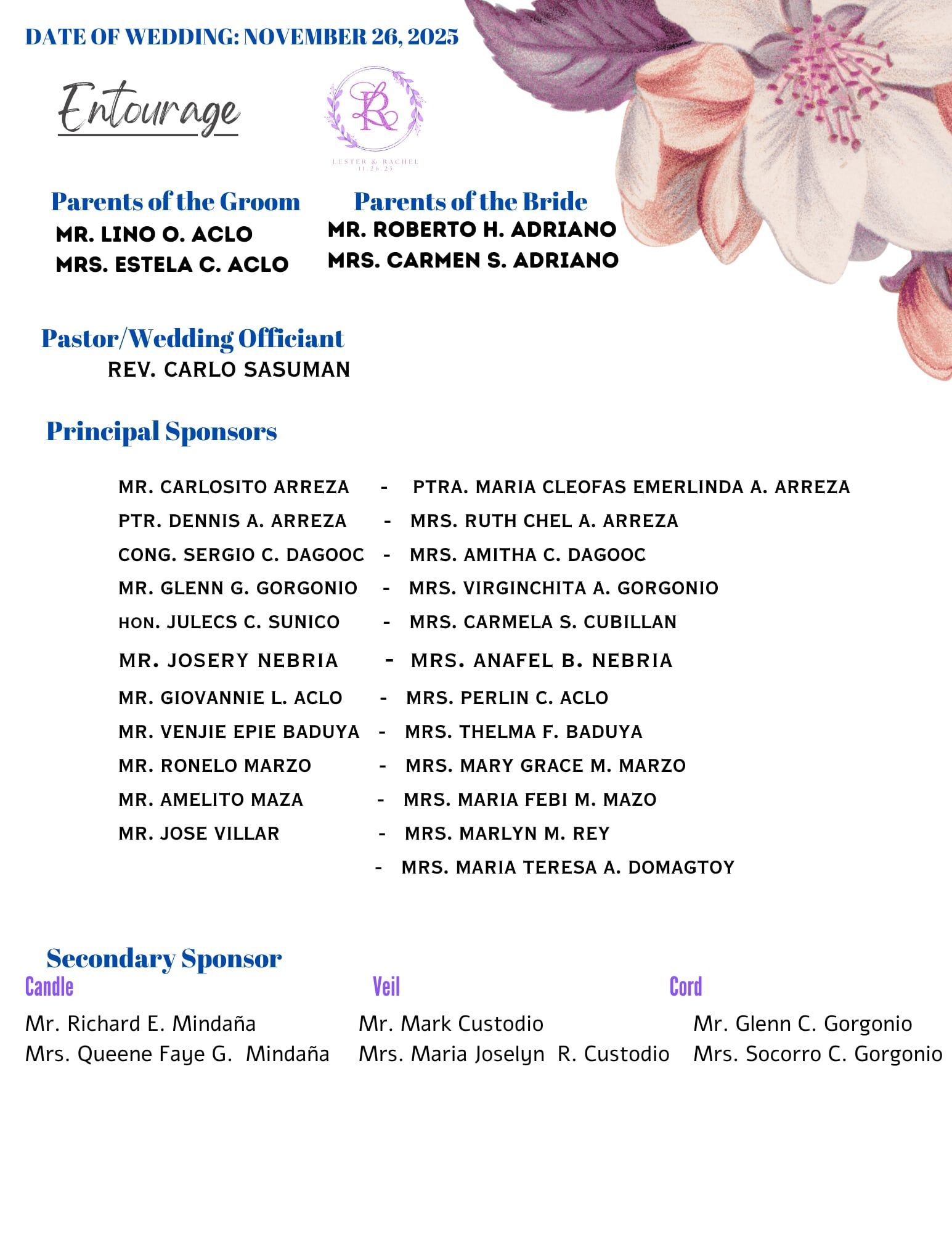 Please adhere to the specified dress code and color motif provided. Dressing accordingly is deeply appreciated, as it will contribute to the elegance and harmony of our celebration.
