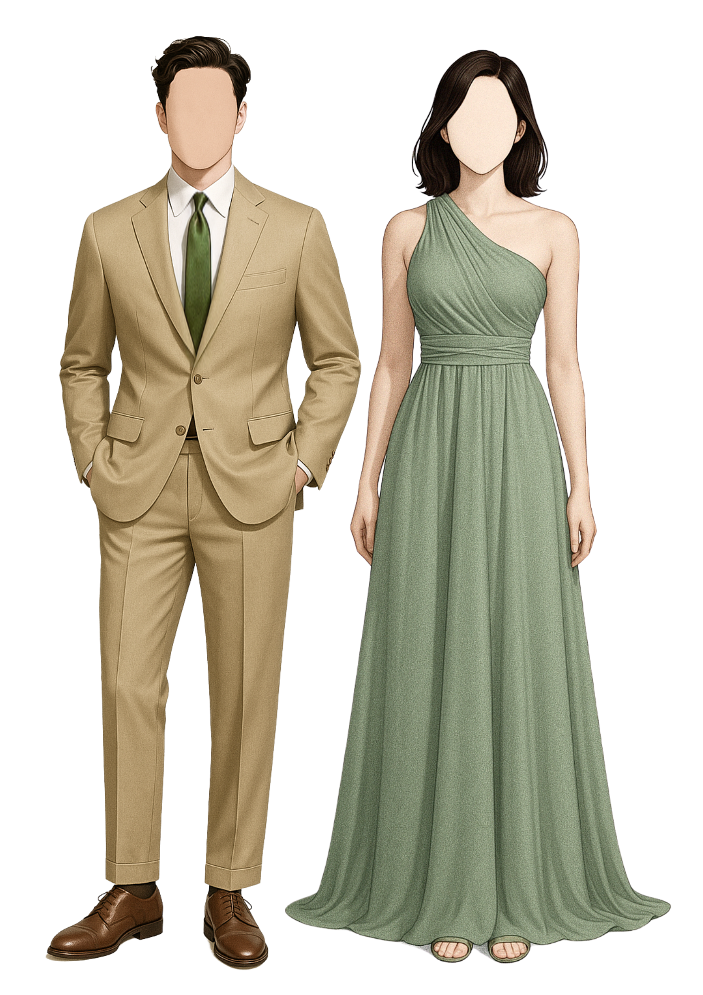 Gentlemen: Beige Coat and Pants, White Inner and Sage Green Tie