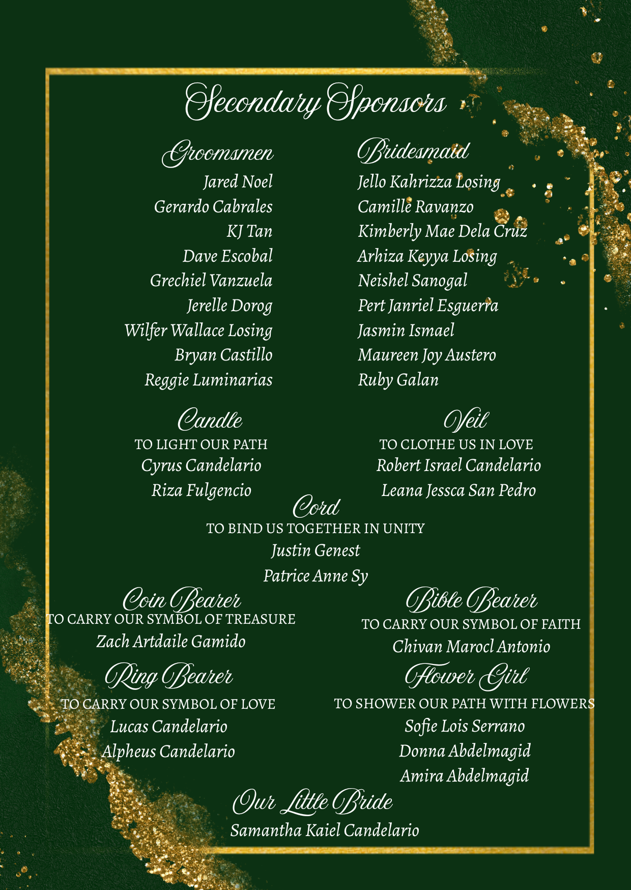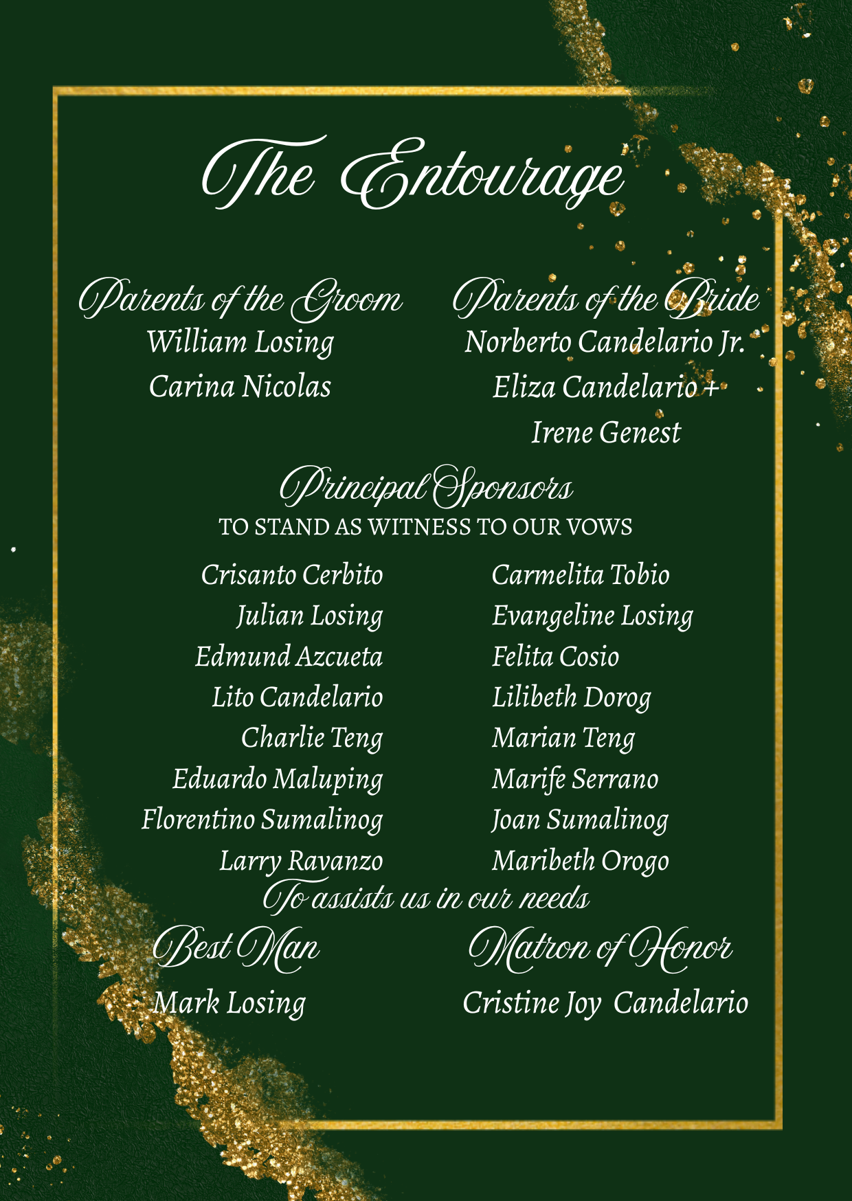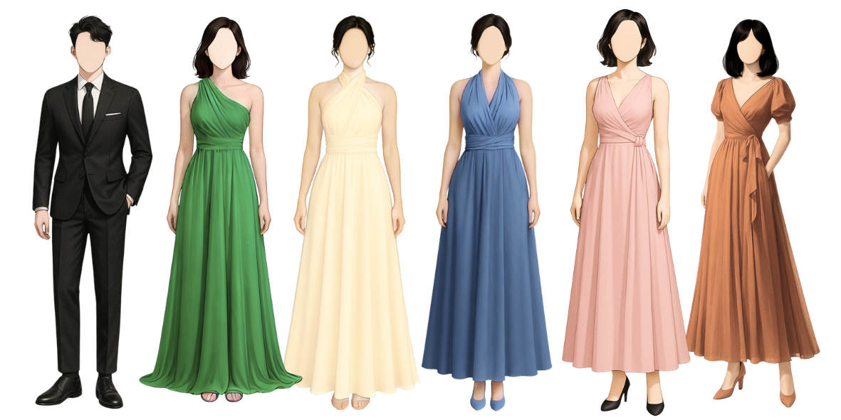 Please adhere to the specified dress code and color motif provided. Dressing accordingly is deeply appreciated, as it will contribute to the elegance and harmony of our celebration.