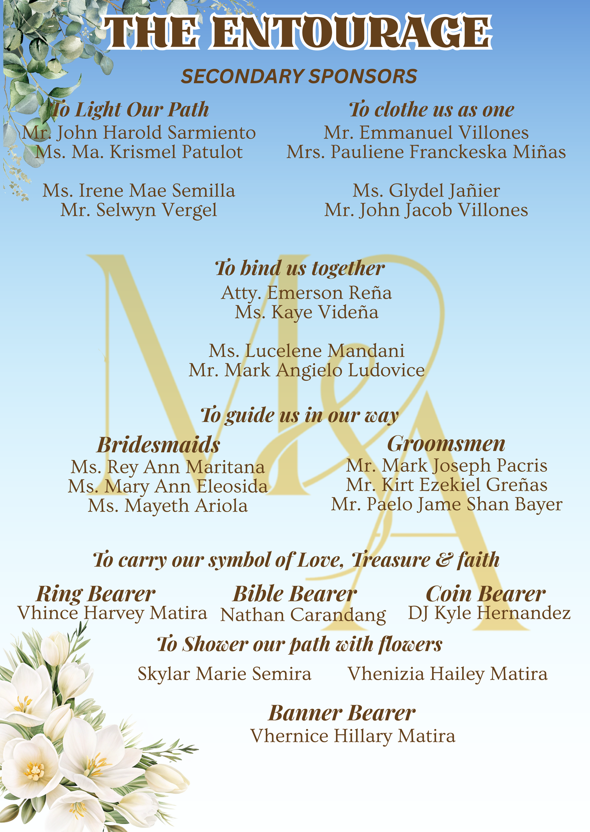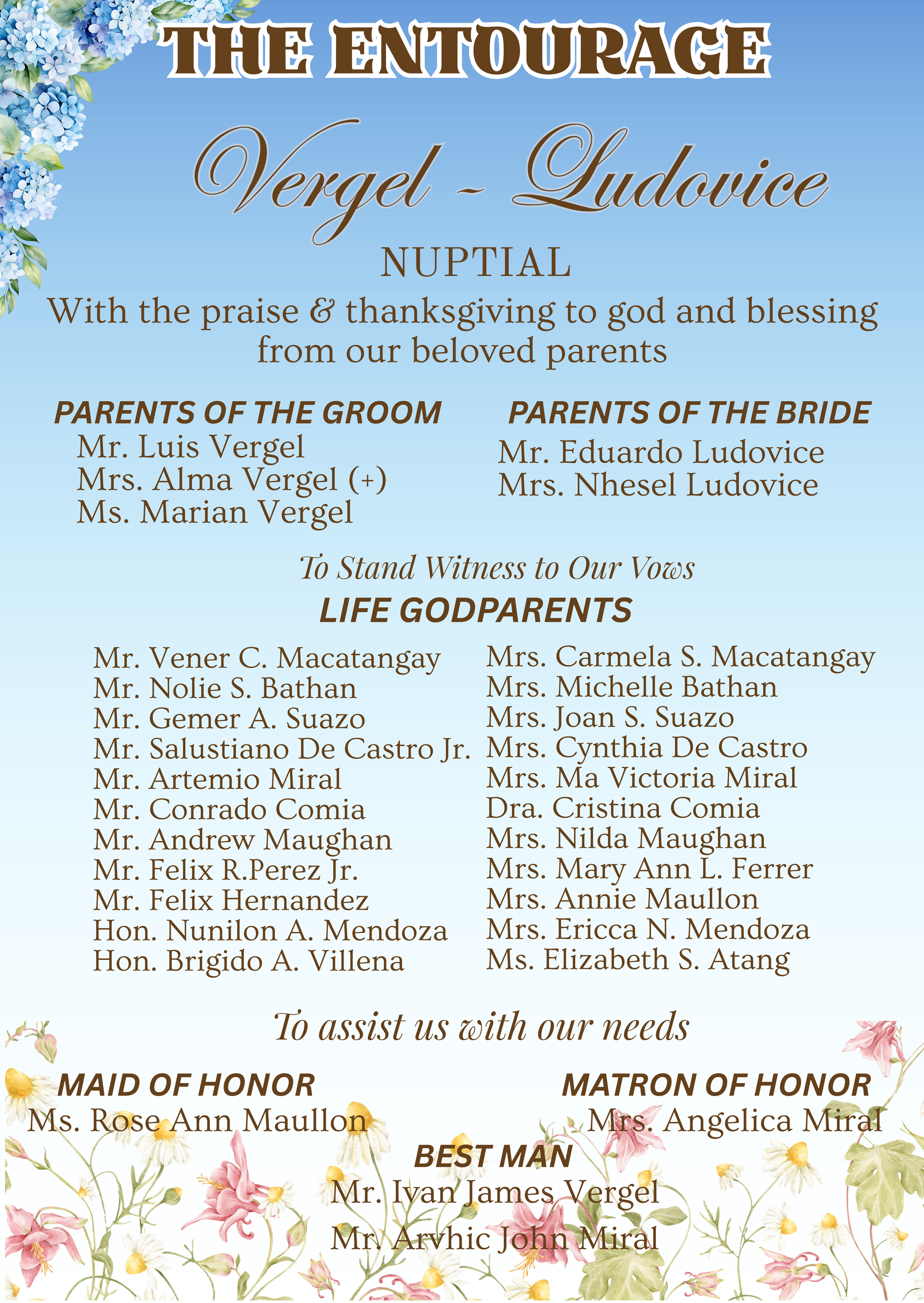 Please adhere to the specified dress code and color motif provided. Dressing accordingly is deeply appreciated, as it will contribute to the elegance and harmony of our celebration.
