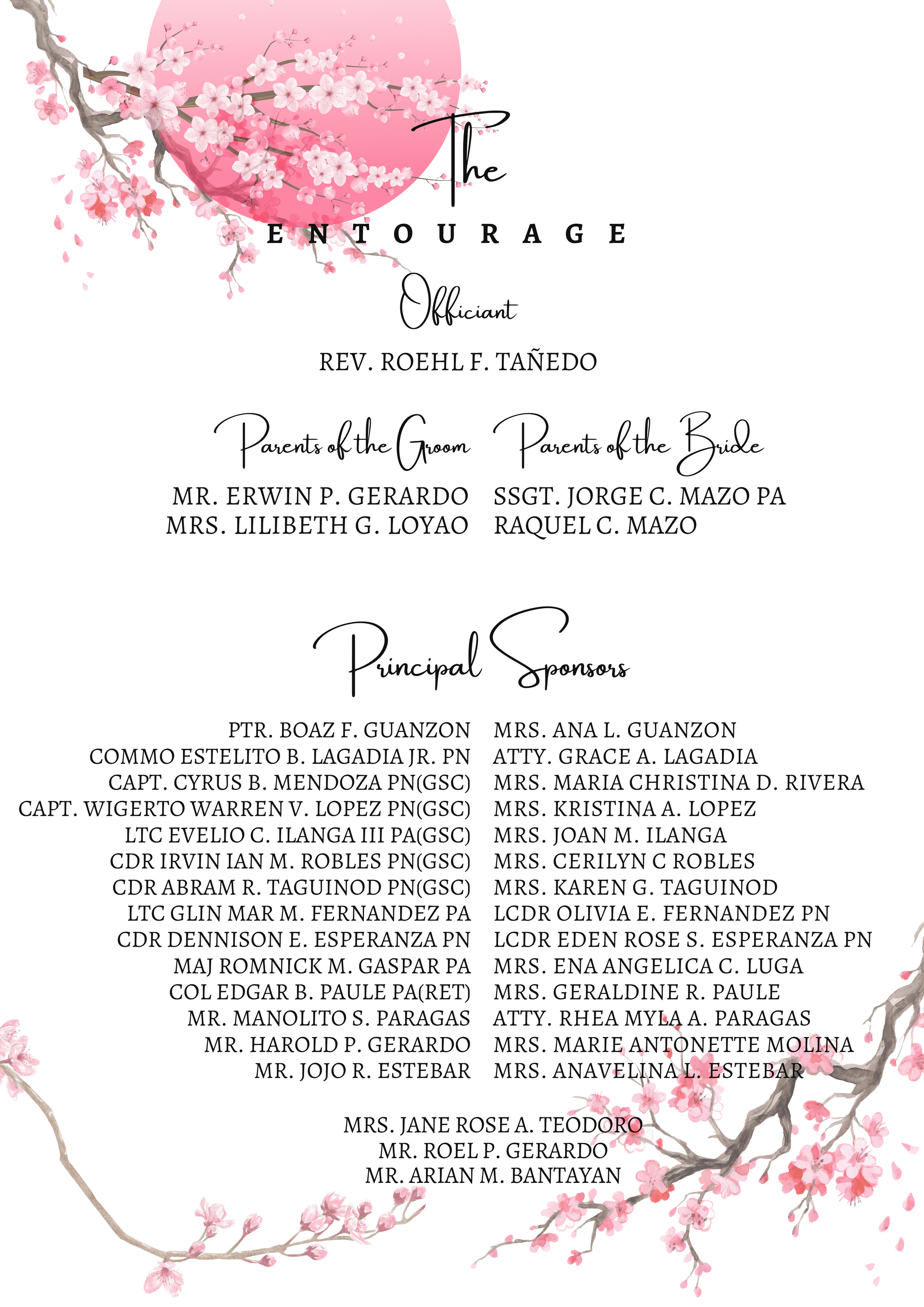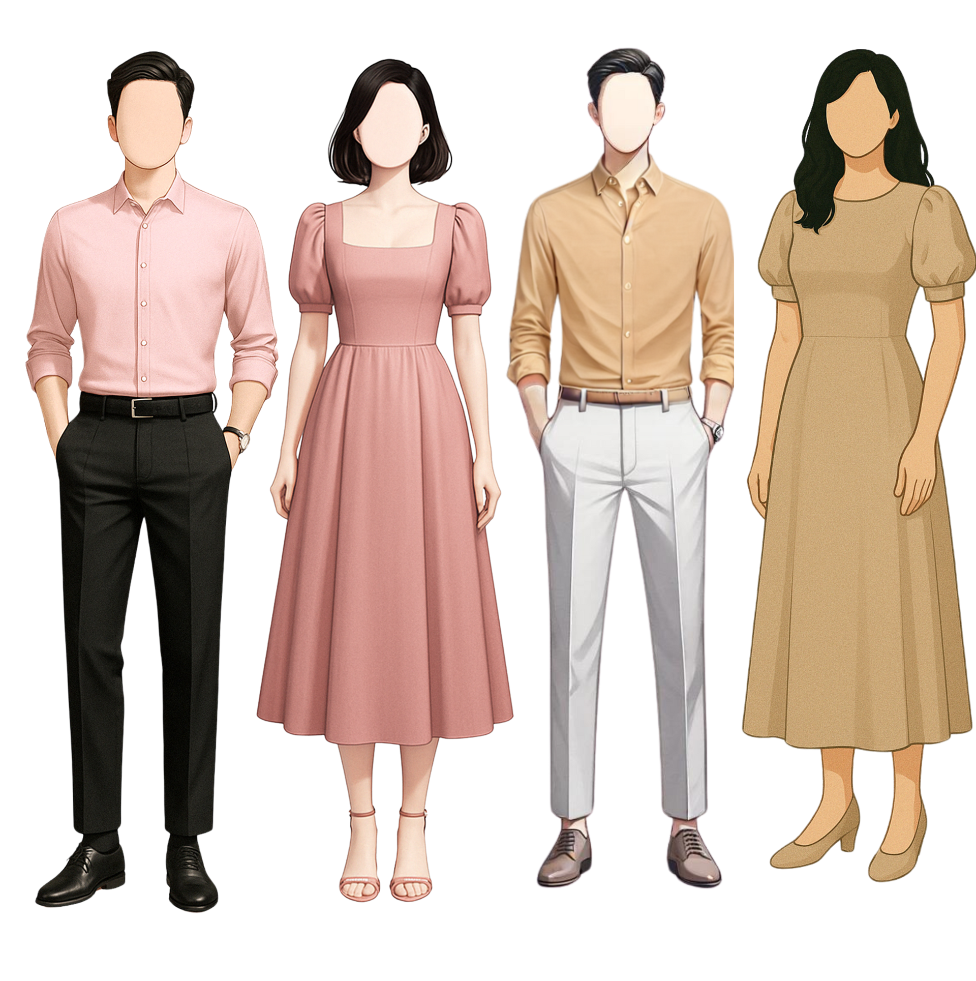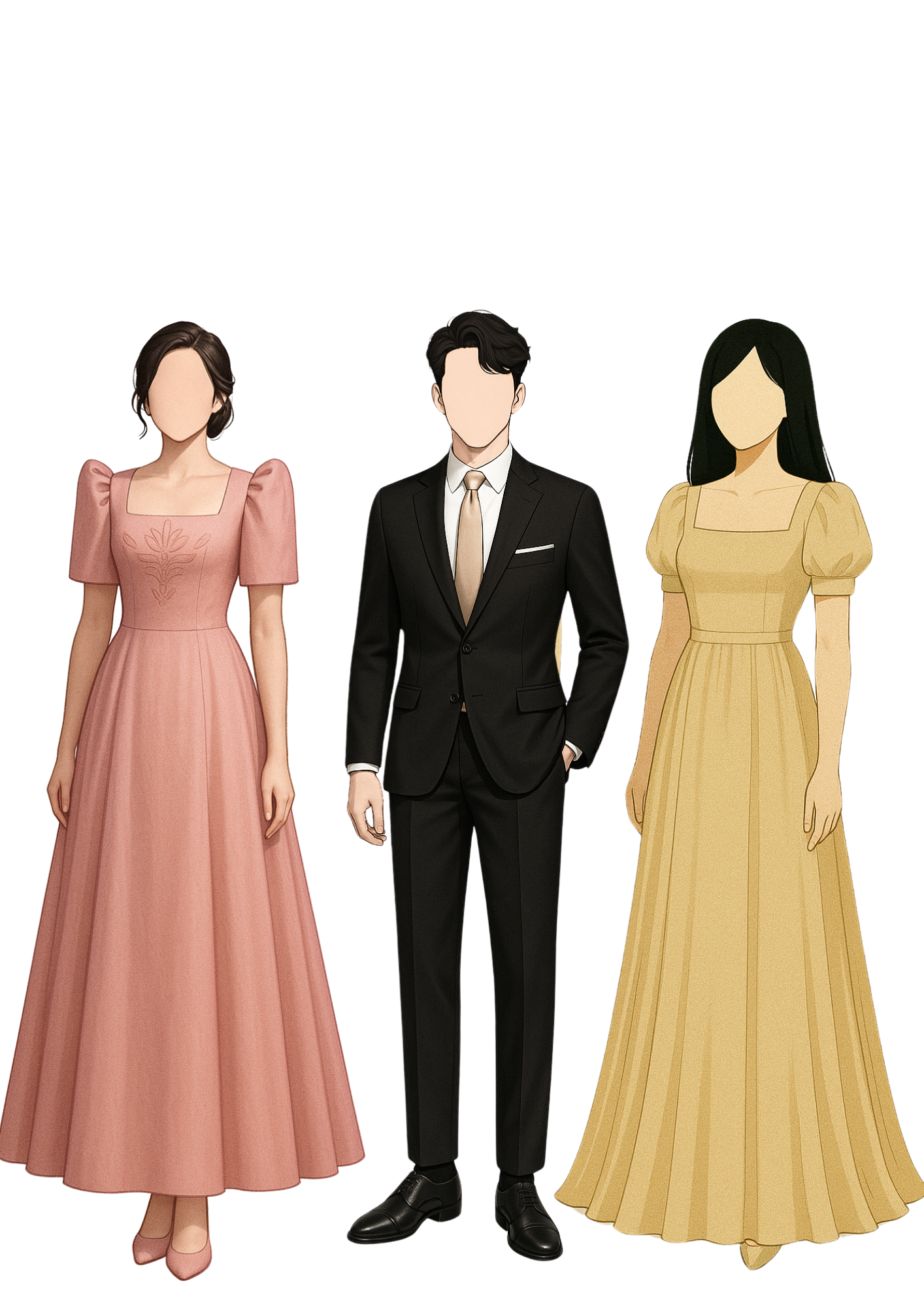 Please adhere to the specified dress code and color motif provided. Dressing accordingly is deeply appreciated, as it will contribute to the elegance and harmony of our celebration.