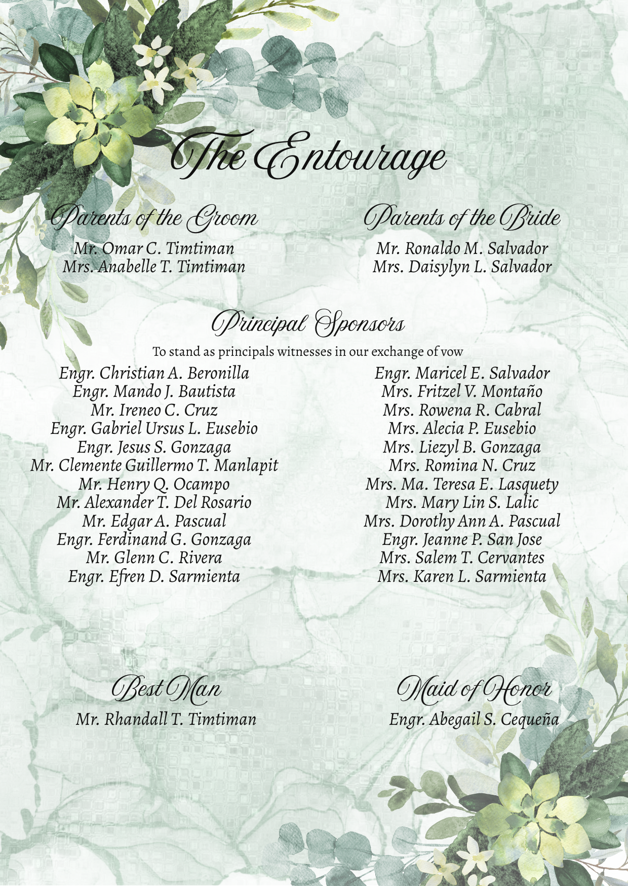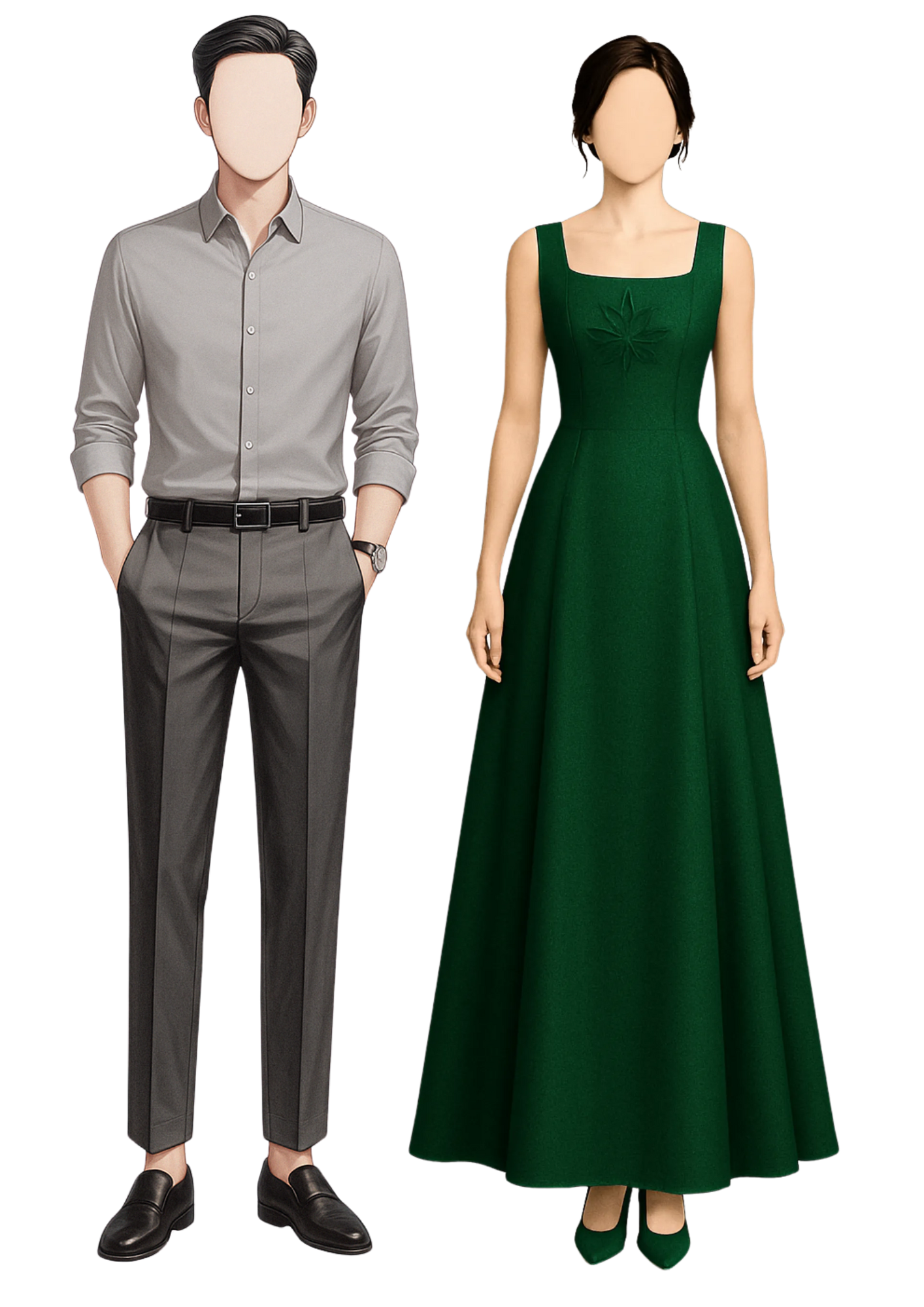 Please adhere to the specified dress code and color motif provided. Dressing accordingly is deeply appreciated, as it will contribute to the elegance and harmony of our celebration.