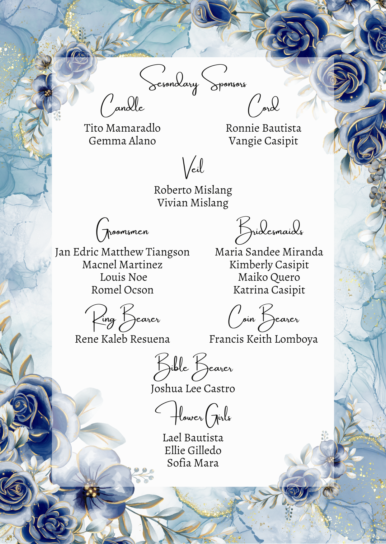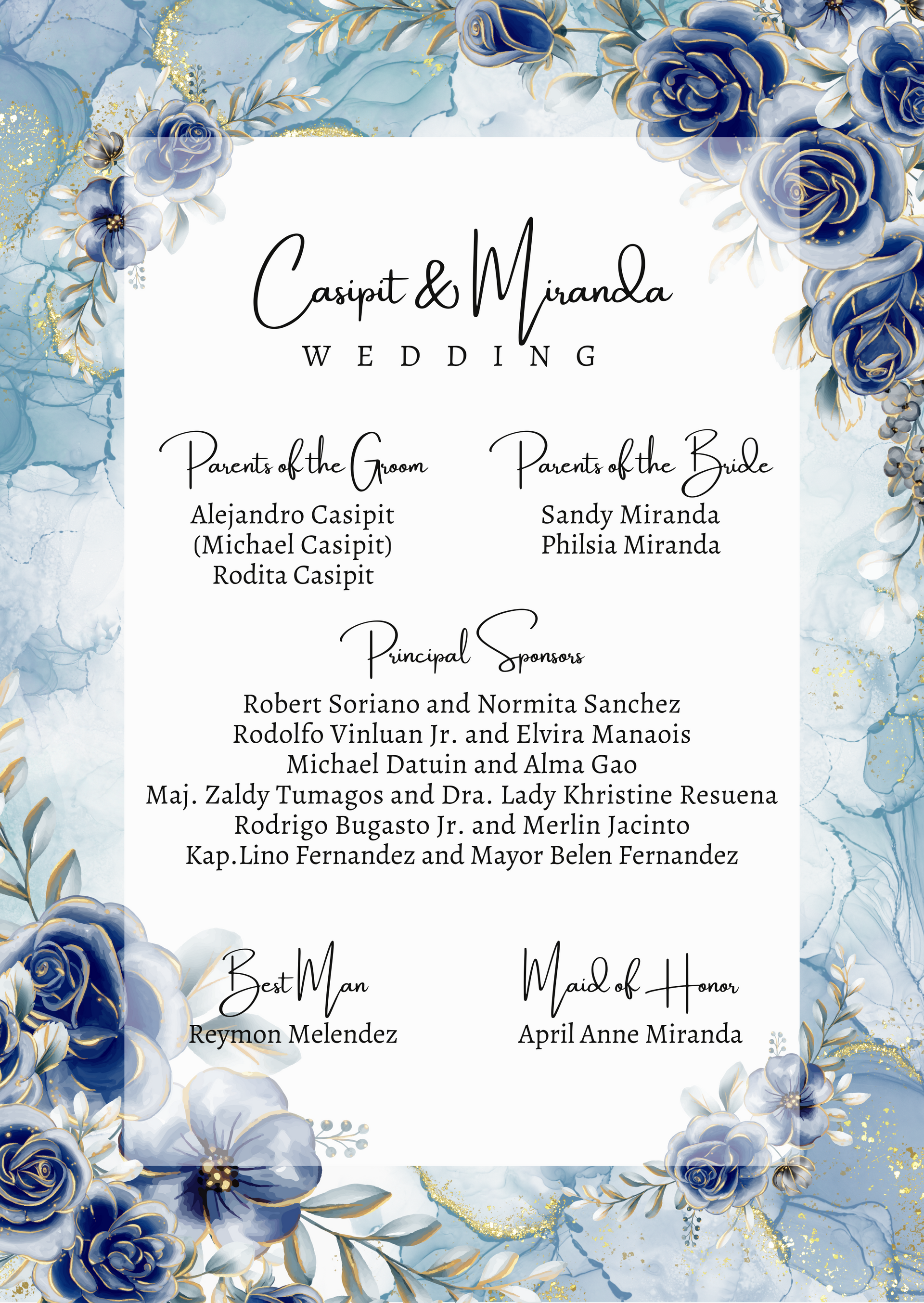 Please adhere to the specified dress code and color motif provided. Dressing accordingly is deeply appreciated, as it will contribute to the elegance and harmony of our celebration.