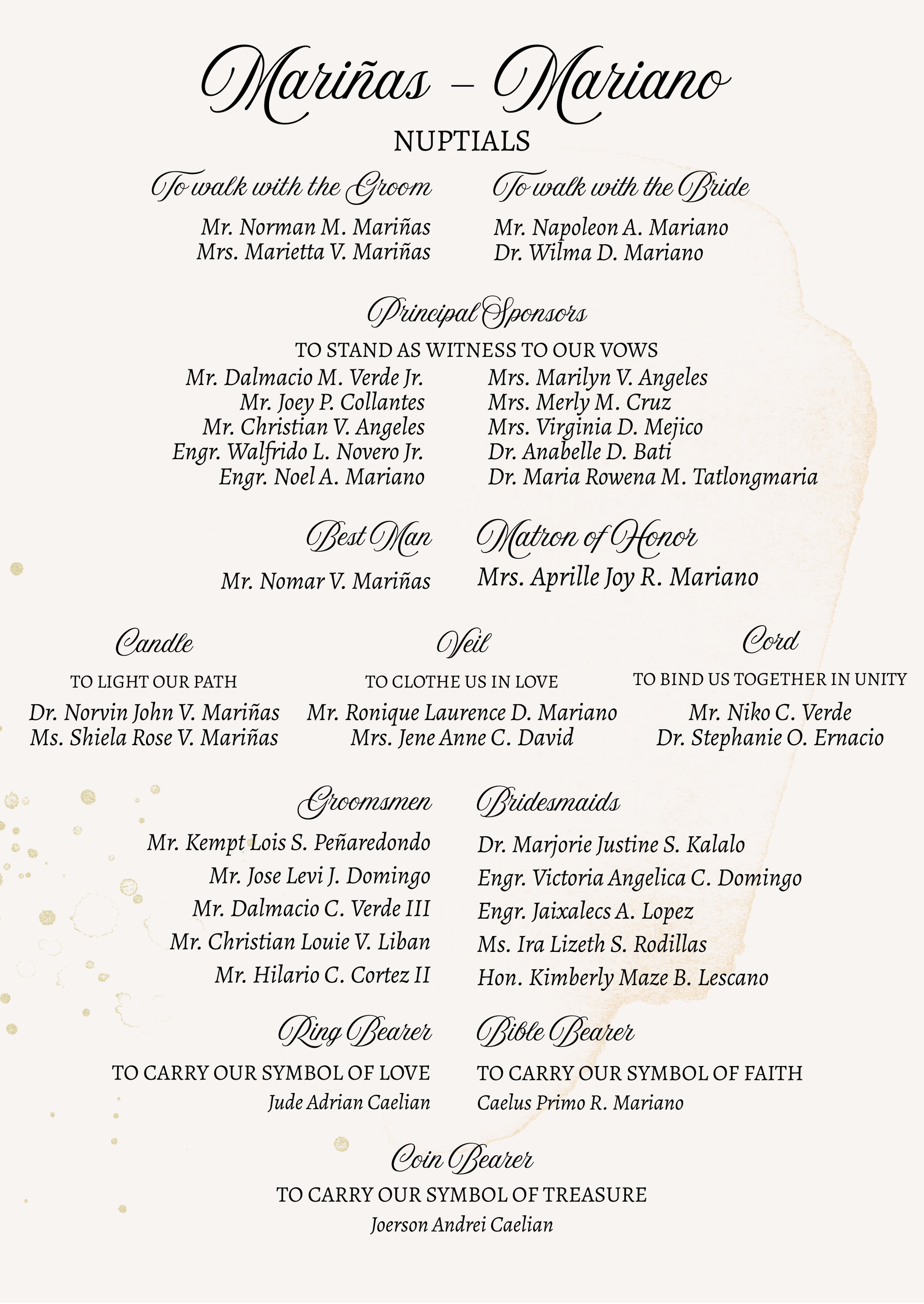 Please adhere to the specified dress code and color motif provided. Dressing accordingly is deeply appreciated, as it will contribute to the elegance and harmony of our celebration.