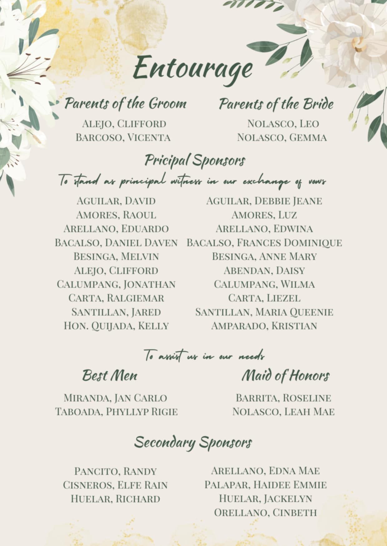 Please adhere to the specified dress code and color motif provided. Dressing accordingly is deeply appreciated, as it will contribute to the elegance and harmony of our celebration.