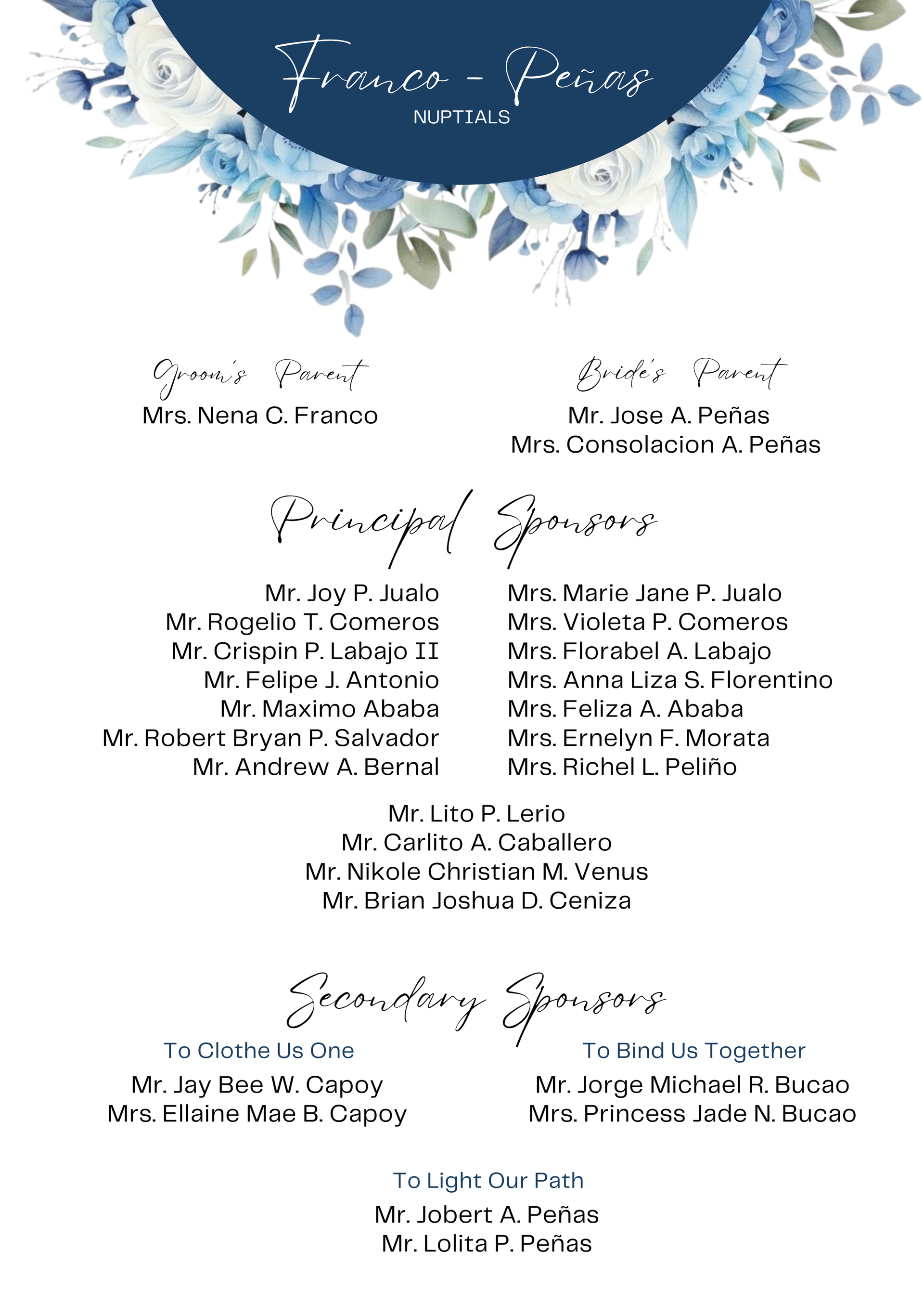 Please adhere to the specified dress code and color motif provided. Dressing accordingly is deeply appreciated, as it will contribute to the elegance and harmony of our celebration.