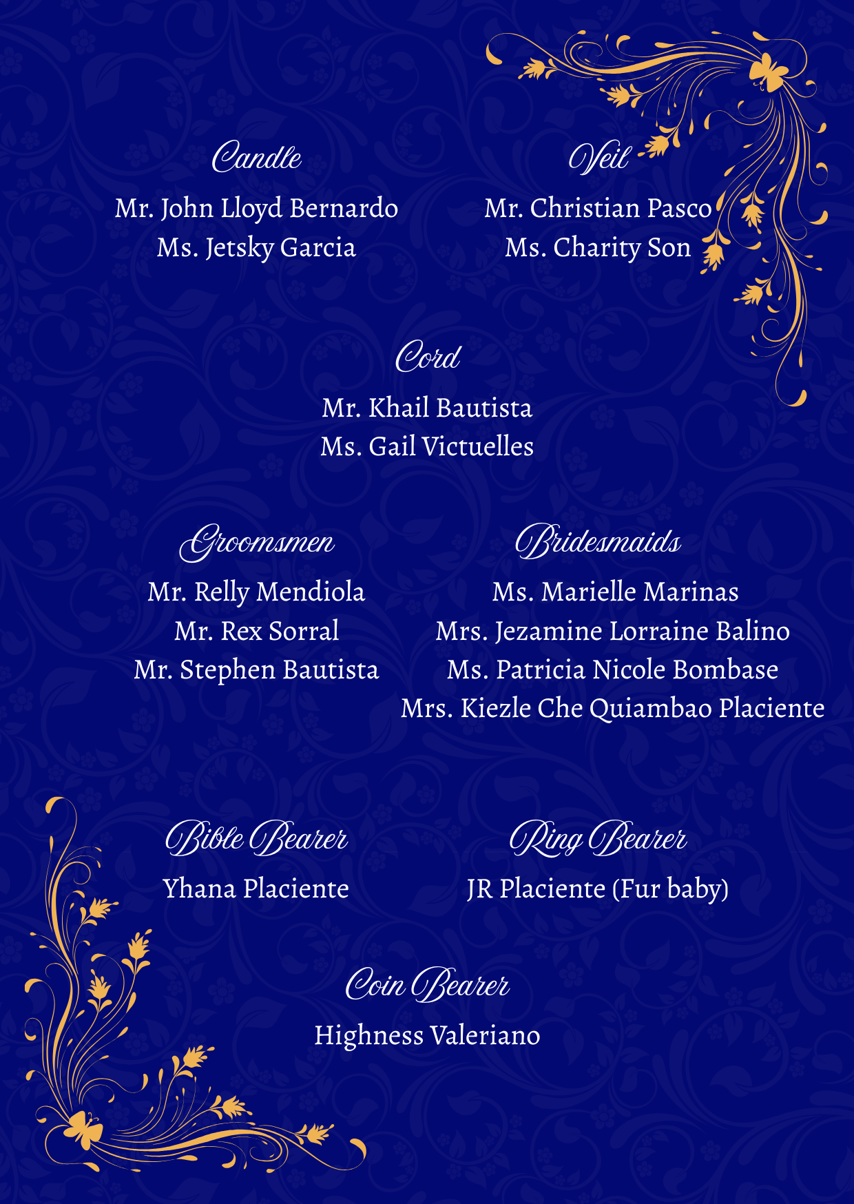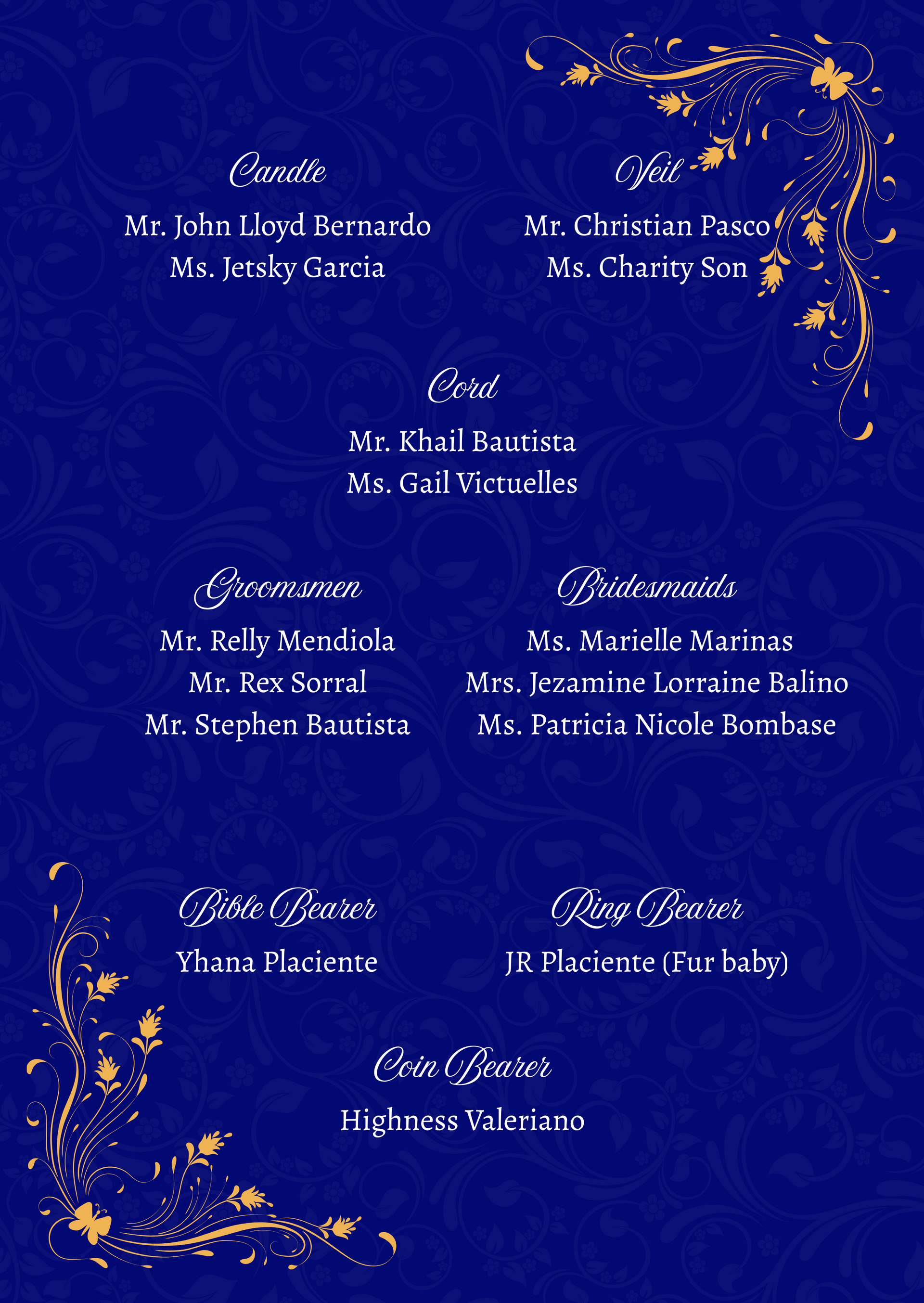 Please adhere to the specified dress code and color motif provided. Dressing accordingly is deeply appreciated, as it will contribute to the elegance and harmony of our celebration.