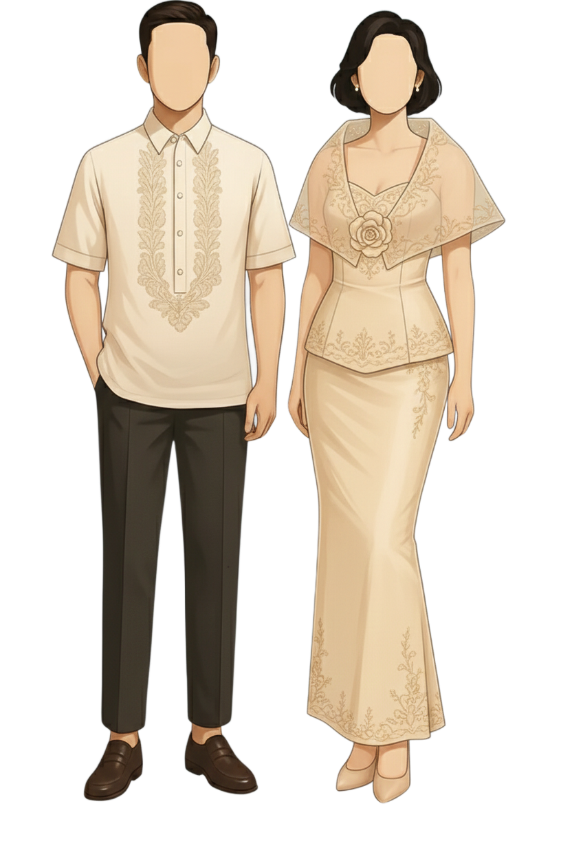 Ninang: Long Dress Filipiana (Beige)
