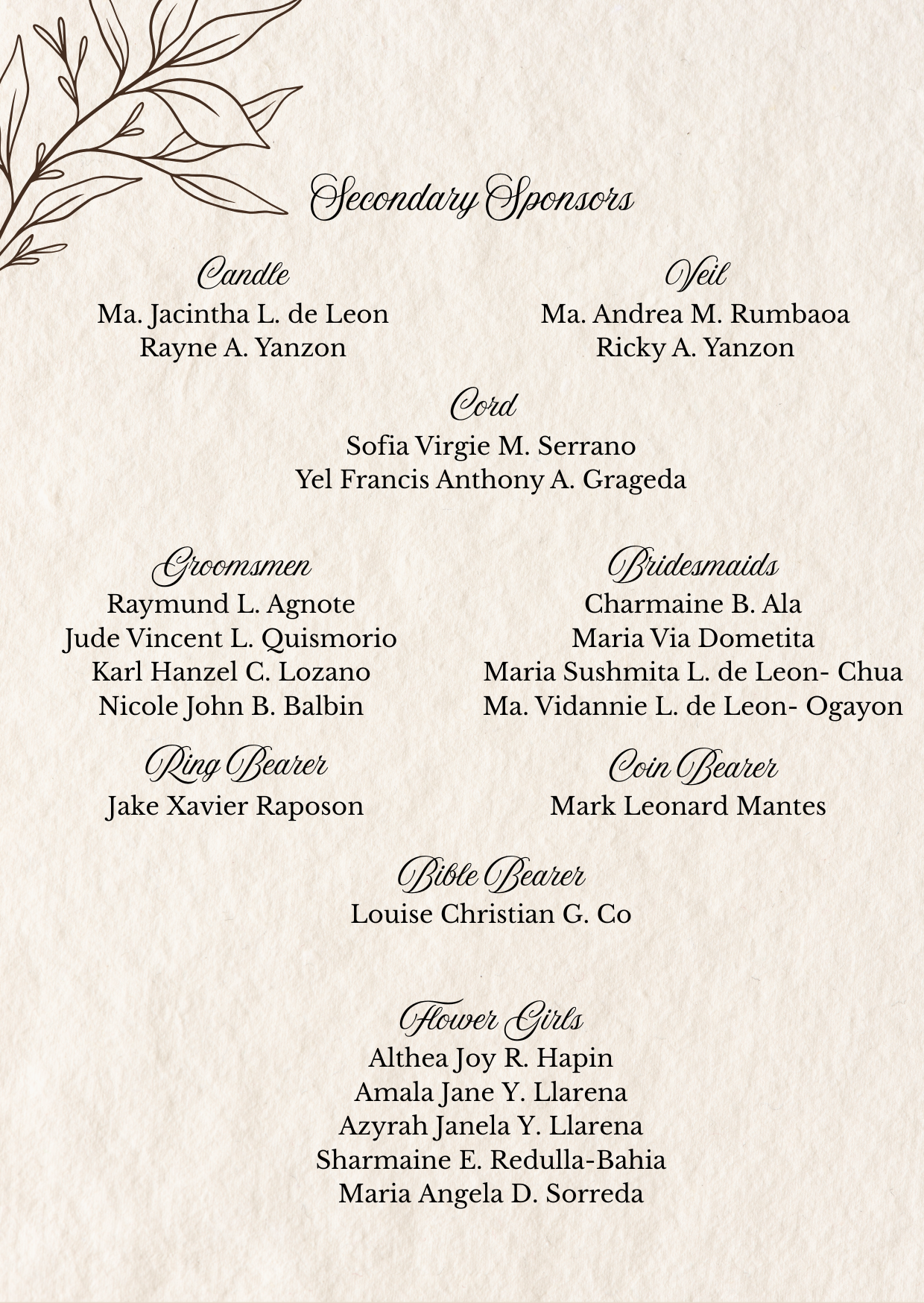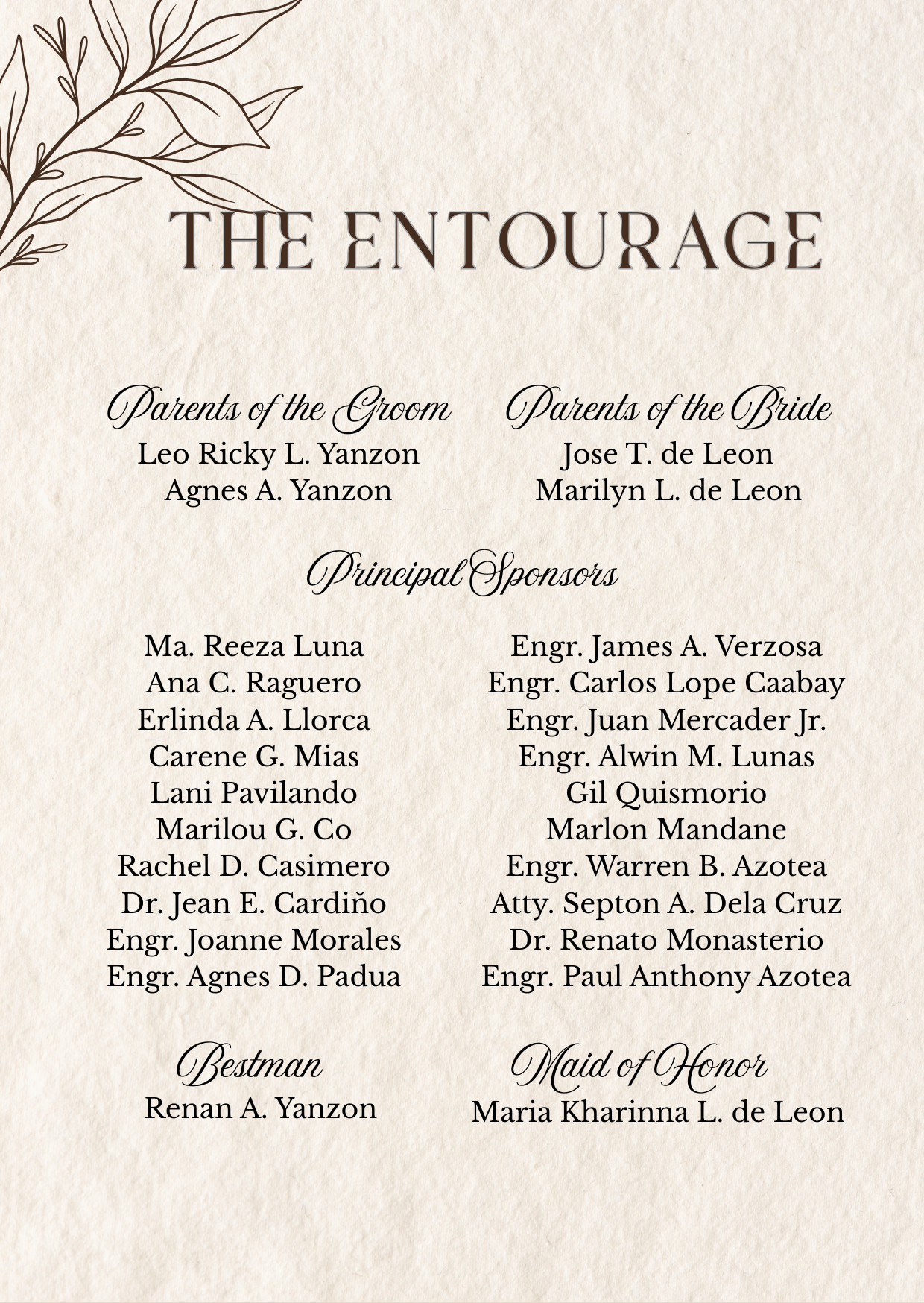 Please adhere to the specified dress code and color motif provided. Dressing accordingly is deeply appreciated, as it will contribute to the elegance and harmony of our celebration.