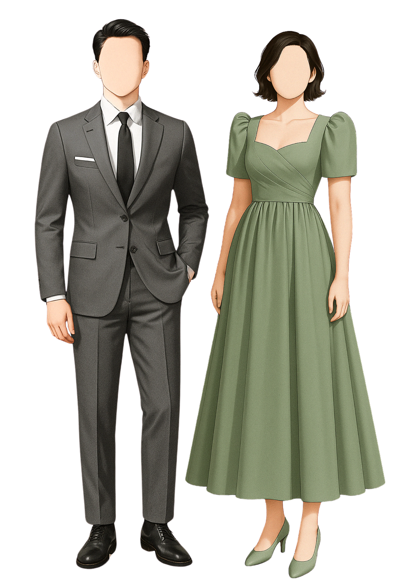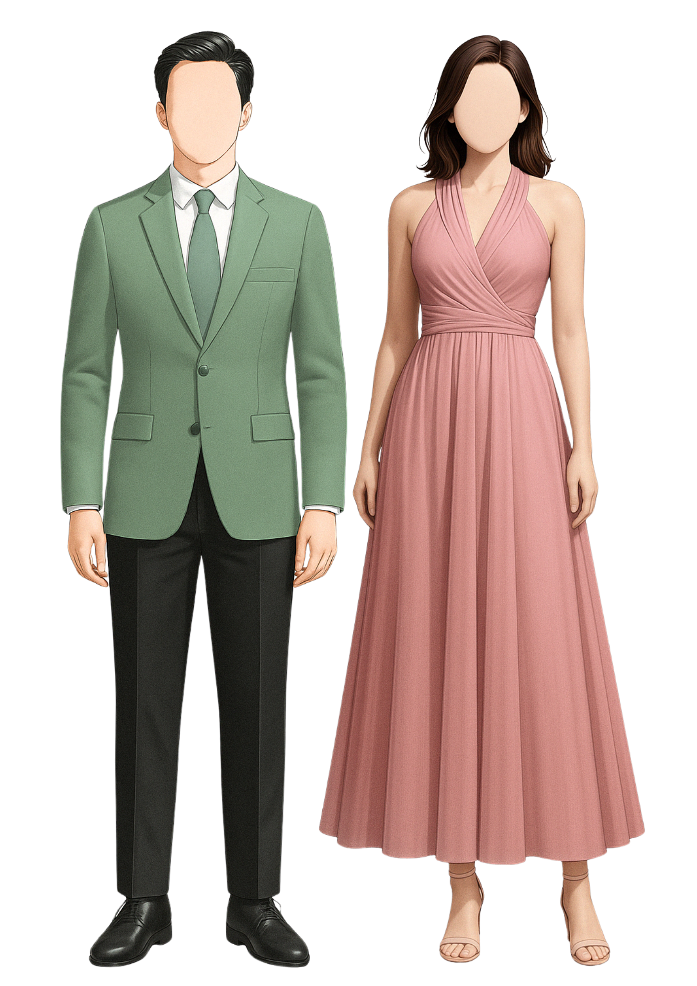 Please adhere to the specified dress code and color motif provided. Dressing accordingly is deeply appreciated, as it will contribute to the elegance and harmony of our celebration.