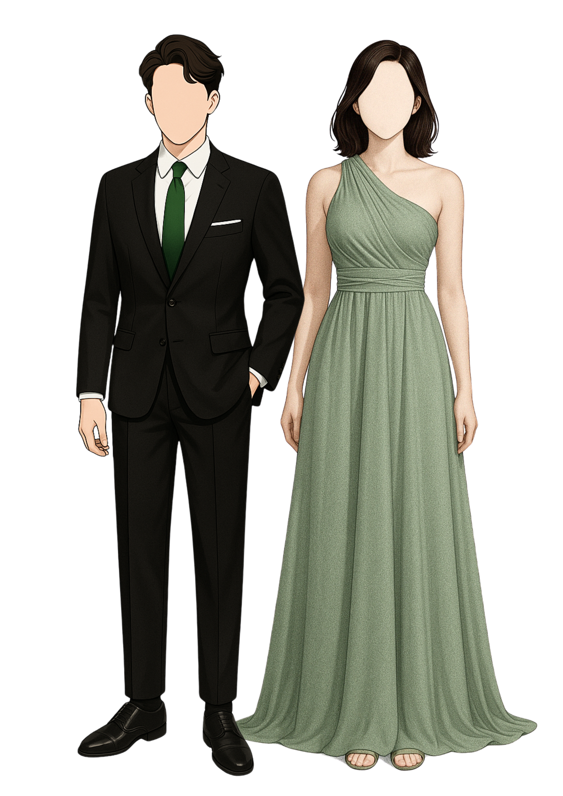 Gentlemen: Black Suit and Slacks with Sage Green Neck tie