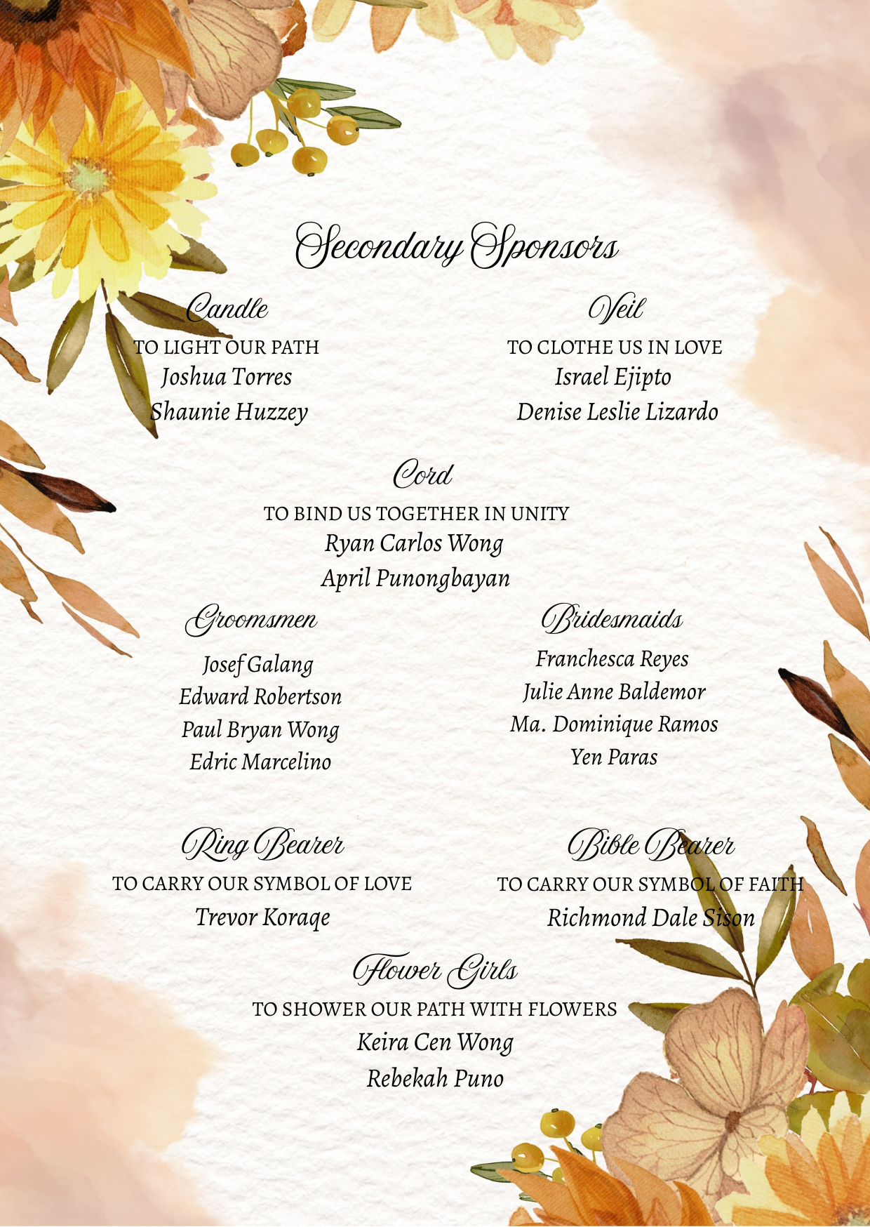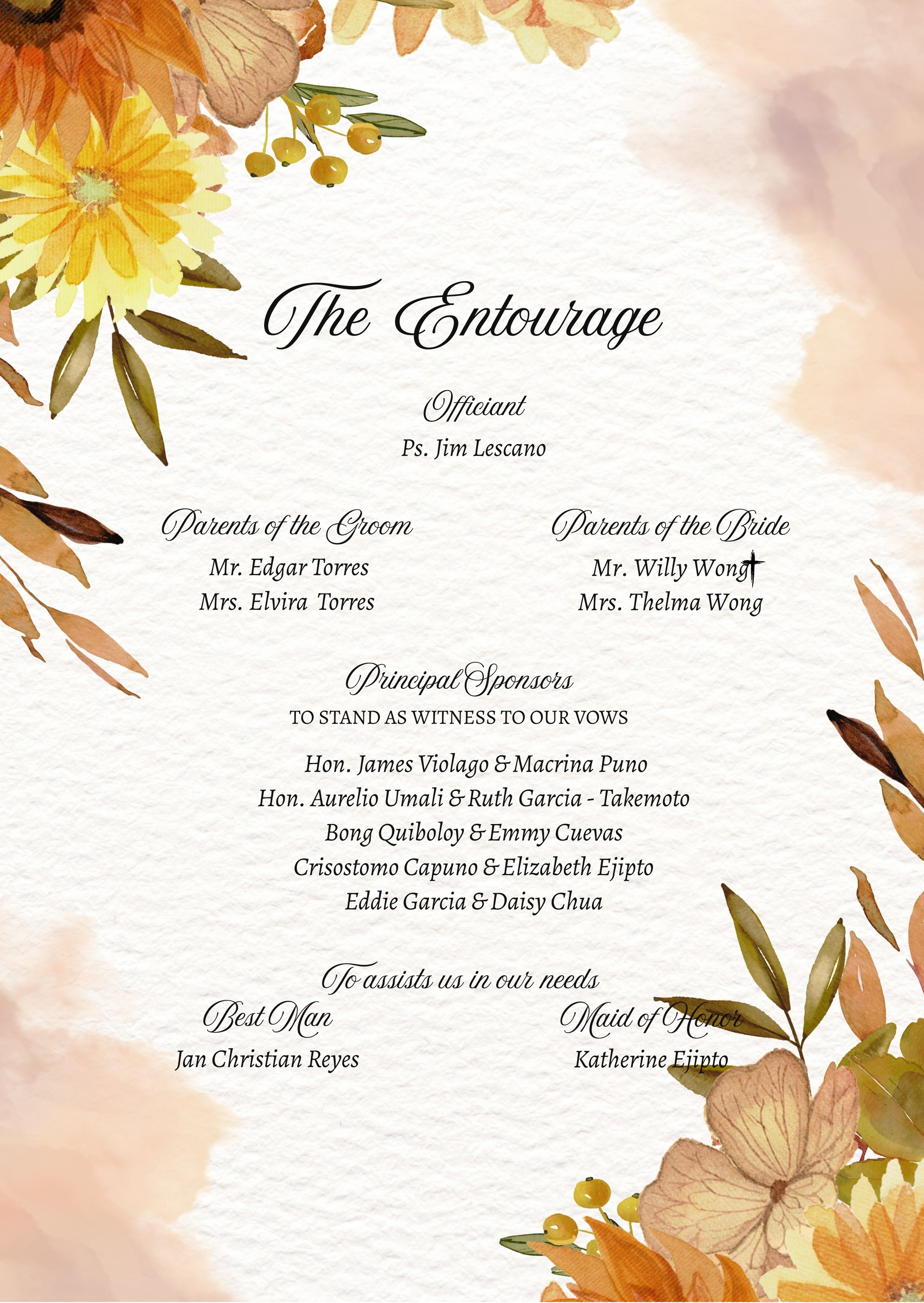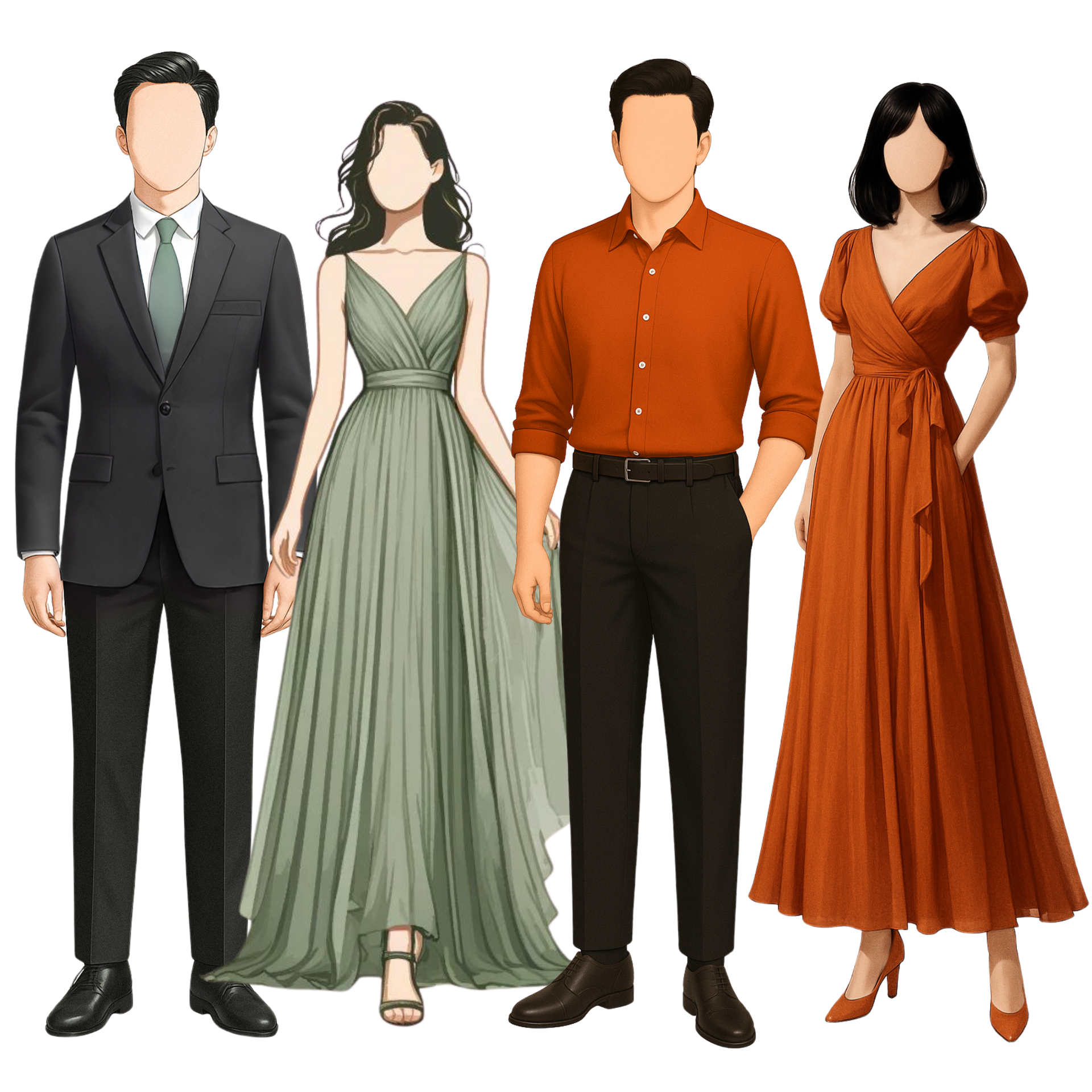 Please adhere to the specified dress code and color motif provided. Dressing accordingly is deeply appreciated, as it will contribute to the elegance and harmony of our celebration.