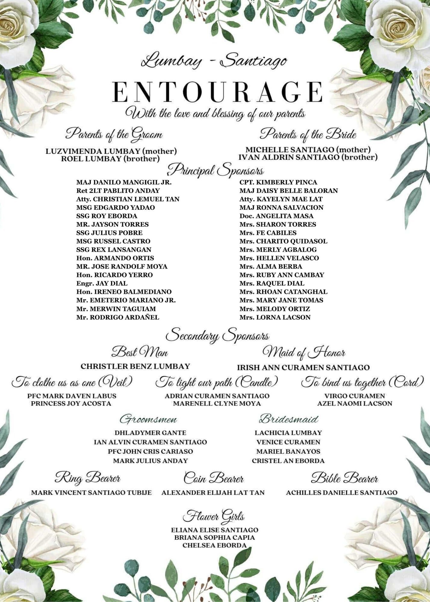 Please adhere to the specified dress code and color motif provided. Dressing accordingly is deeply appreciated, as it will contribute to the elegance and harmony of our celebration.
