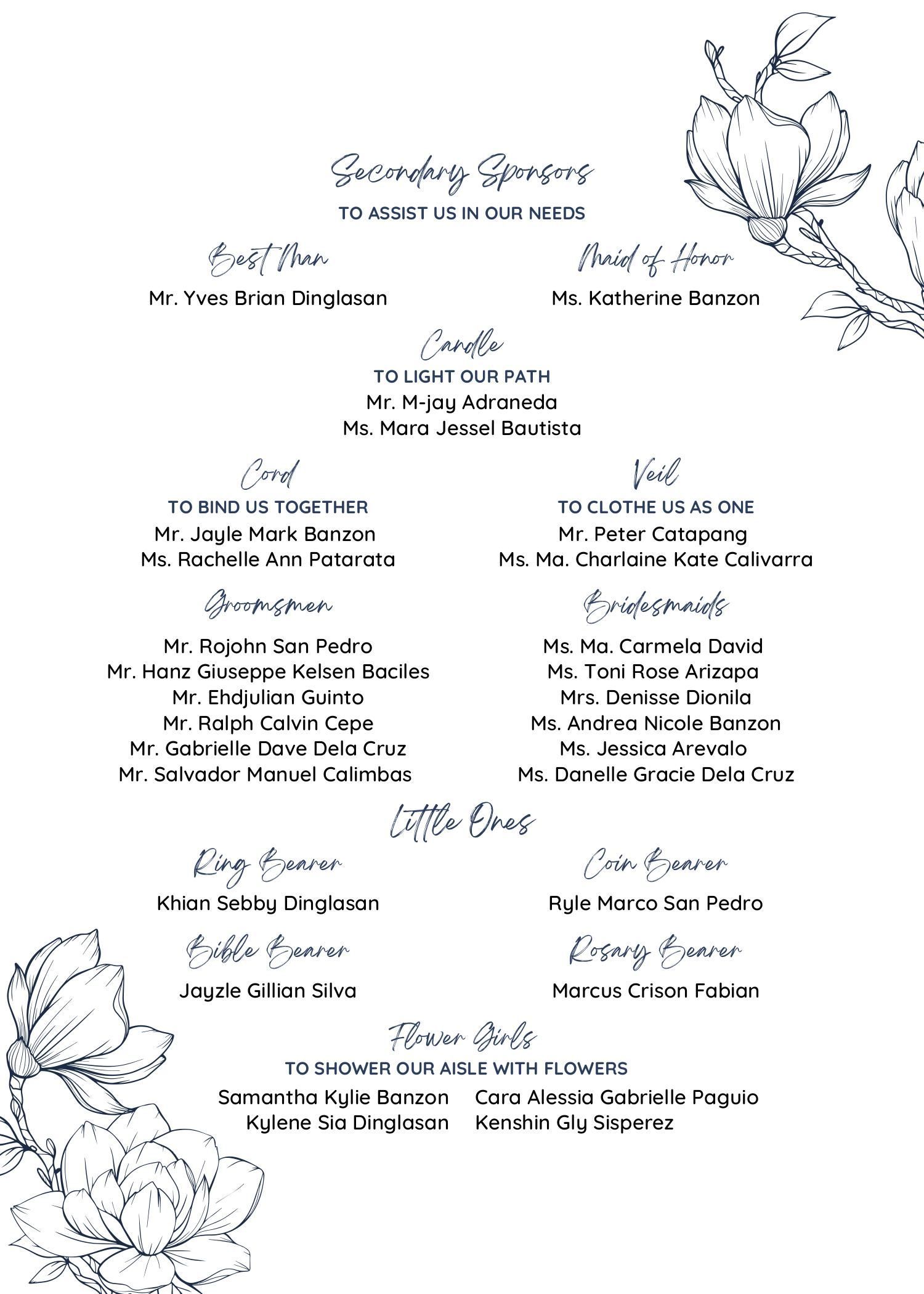 Please adhere to the specified dress code and color motif provided. Dressing accordingly is deeply appreciated.